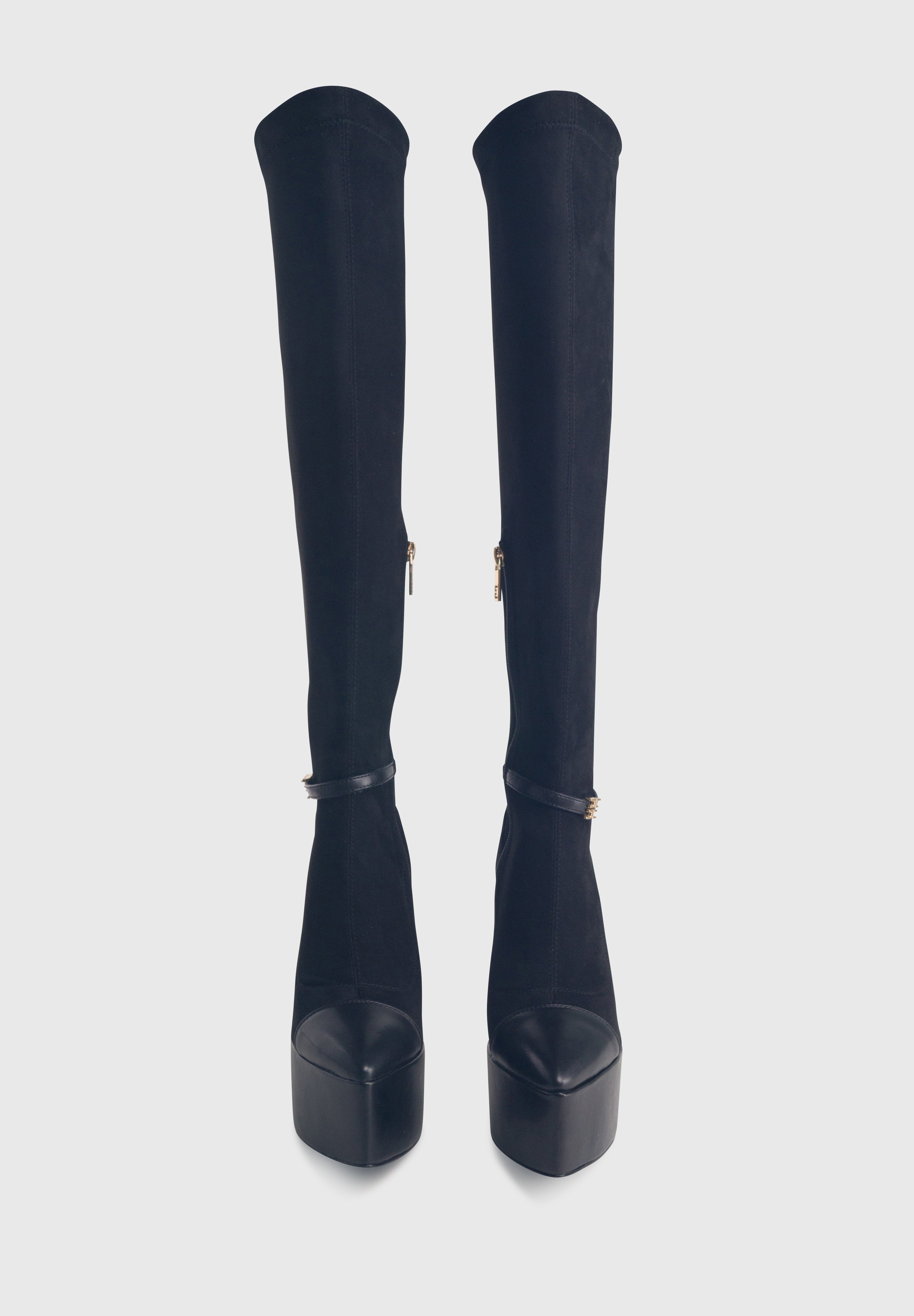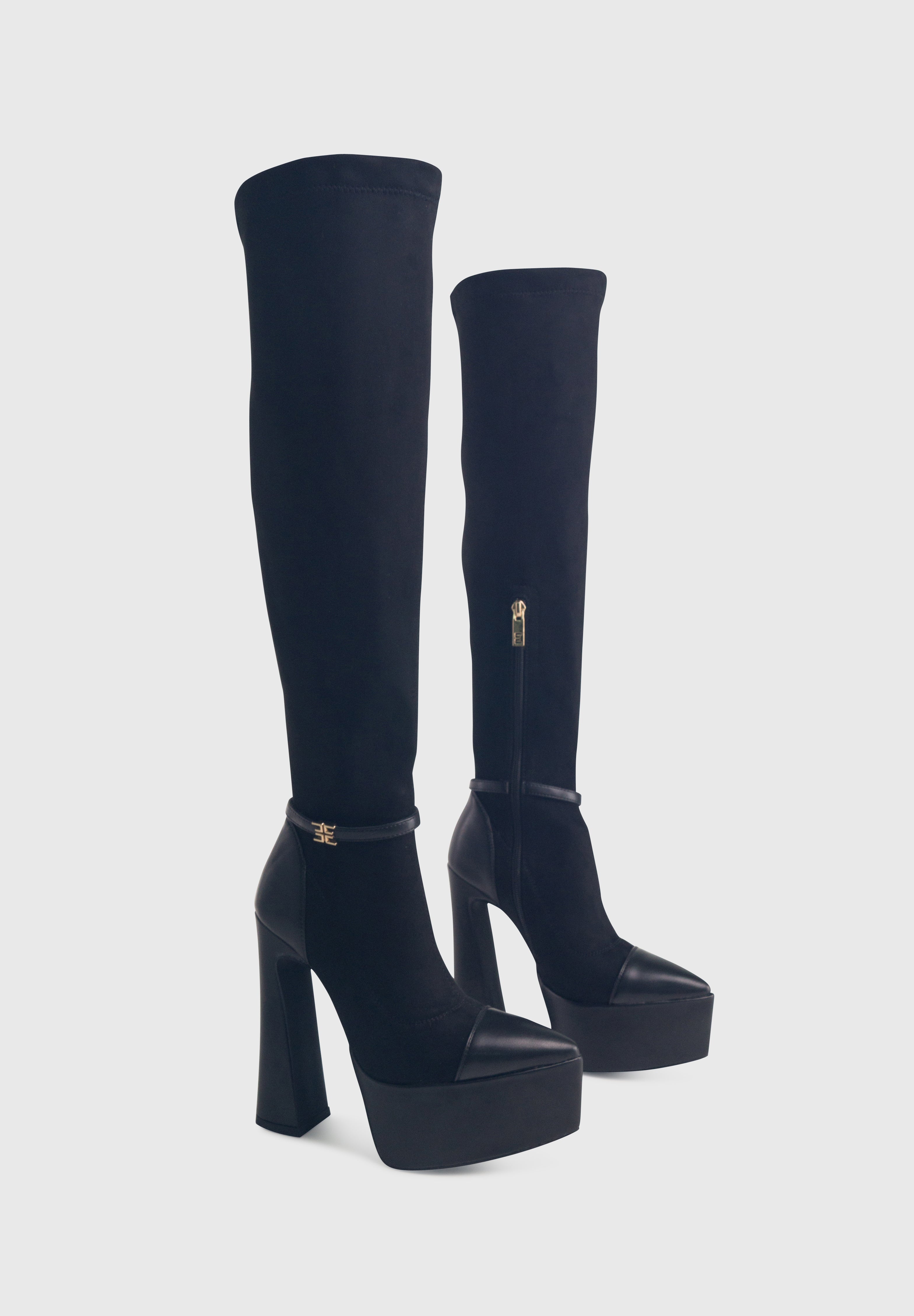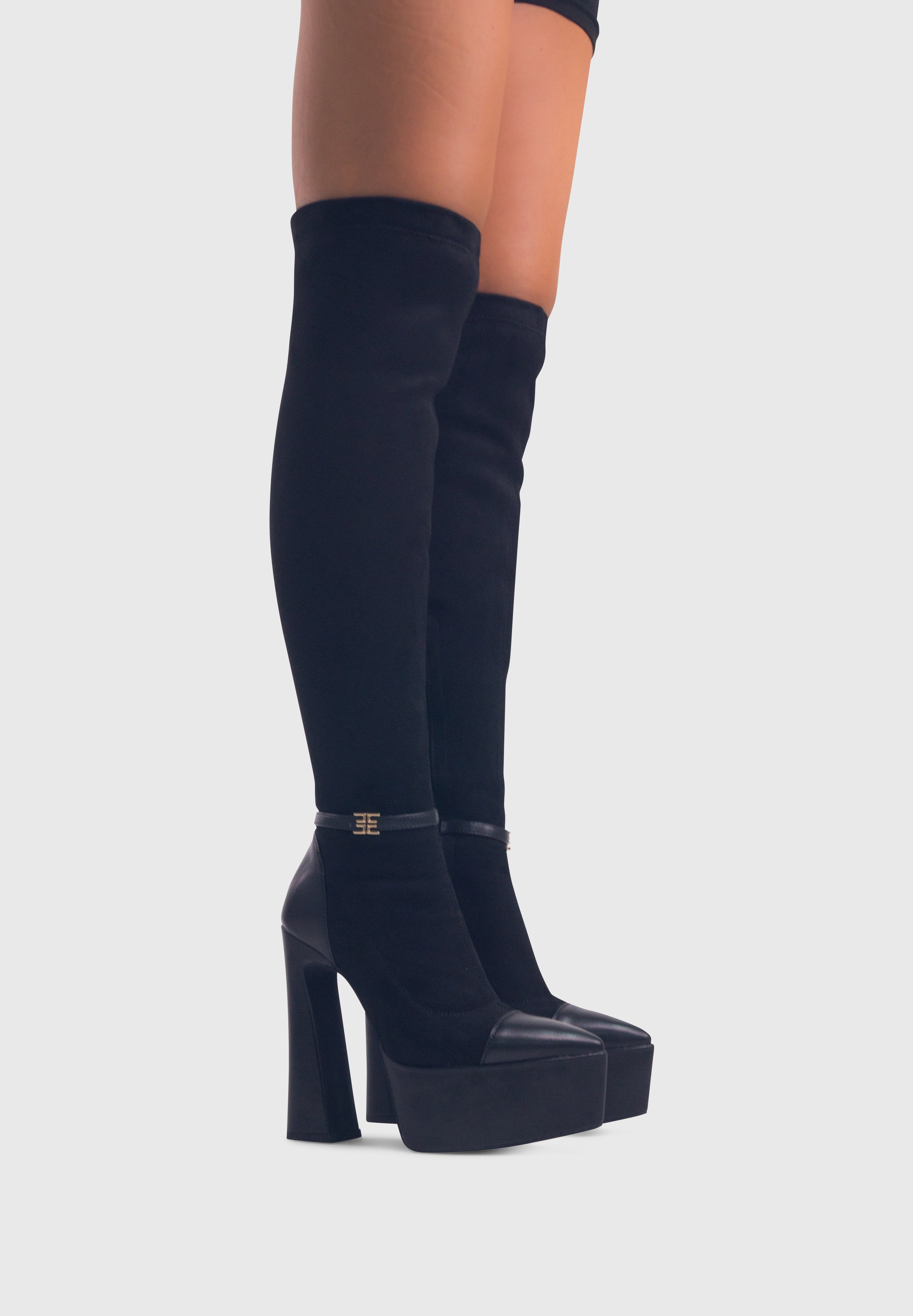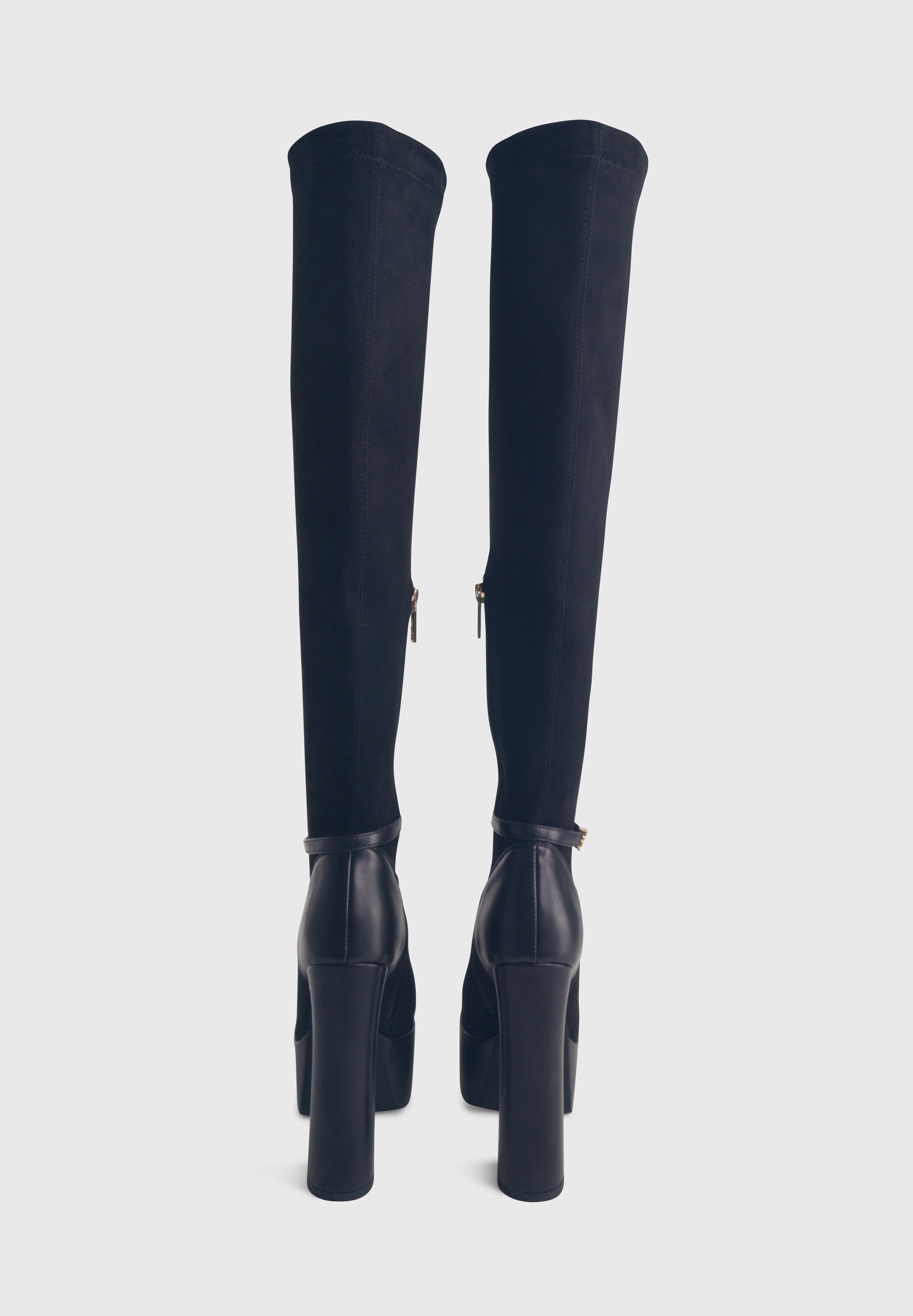 ALICE Nero - Stivali alti cuissard elasticizzati plateau alto tacco largo