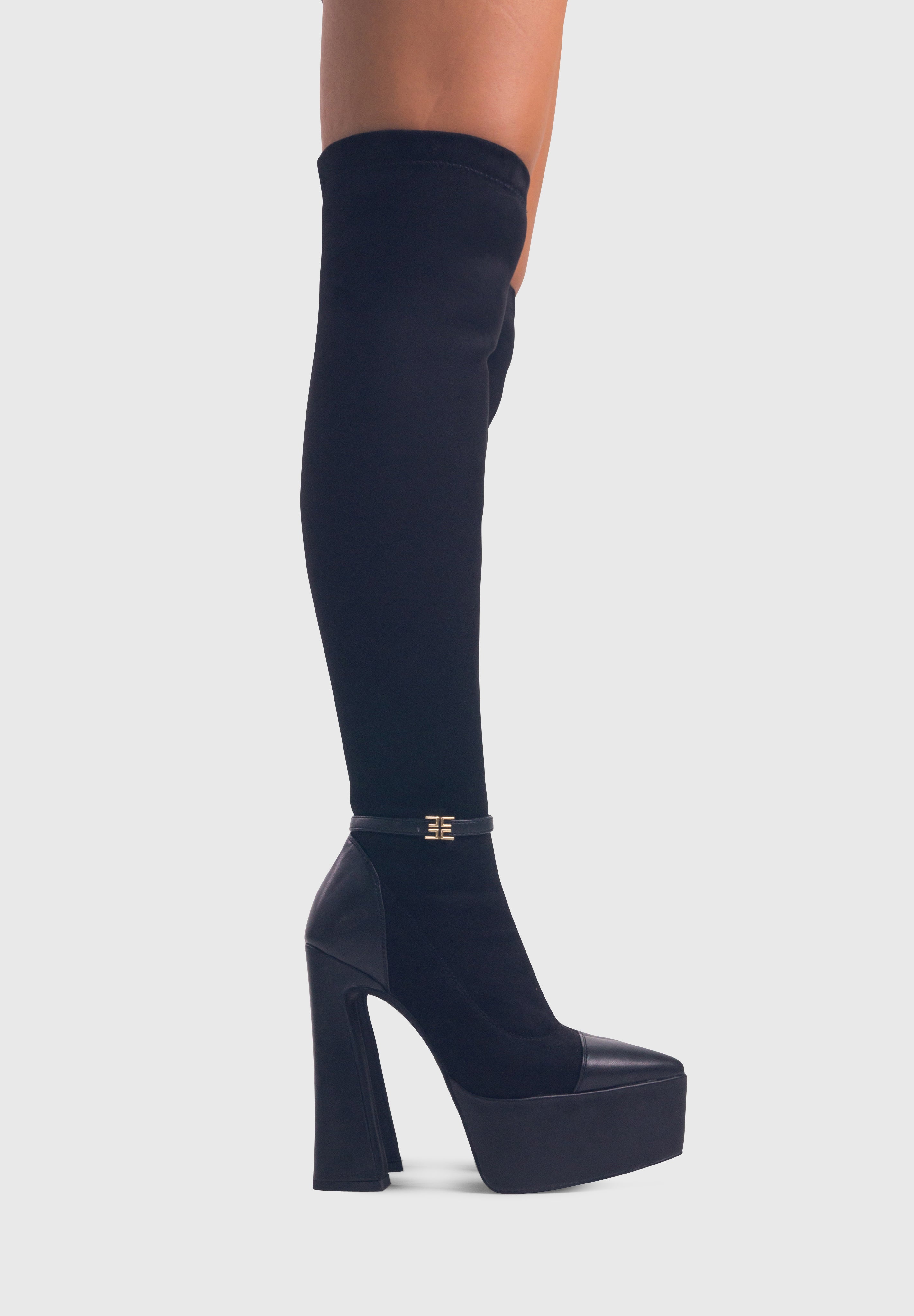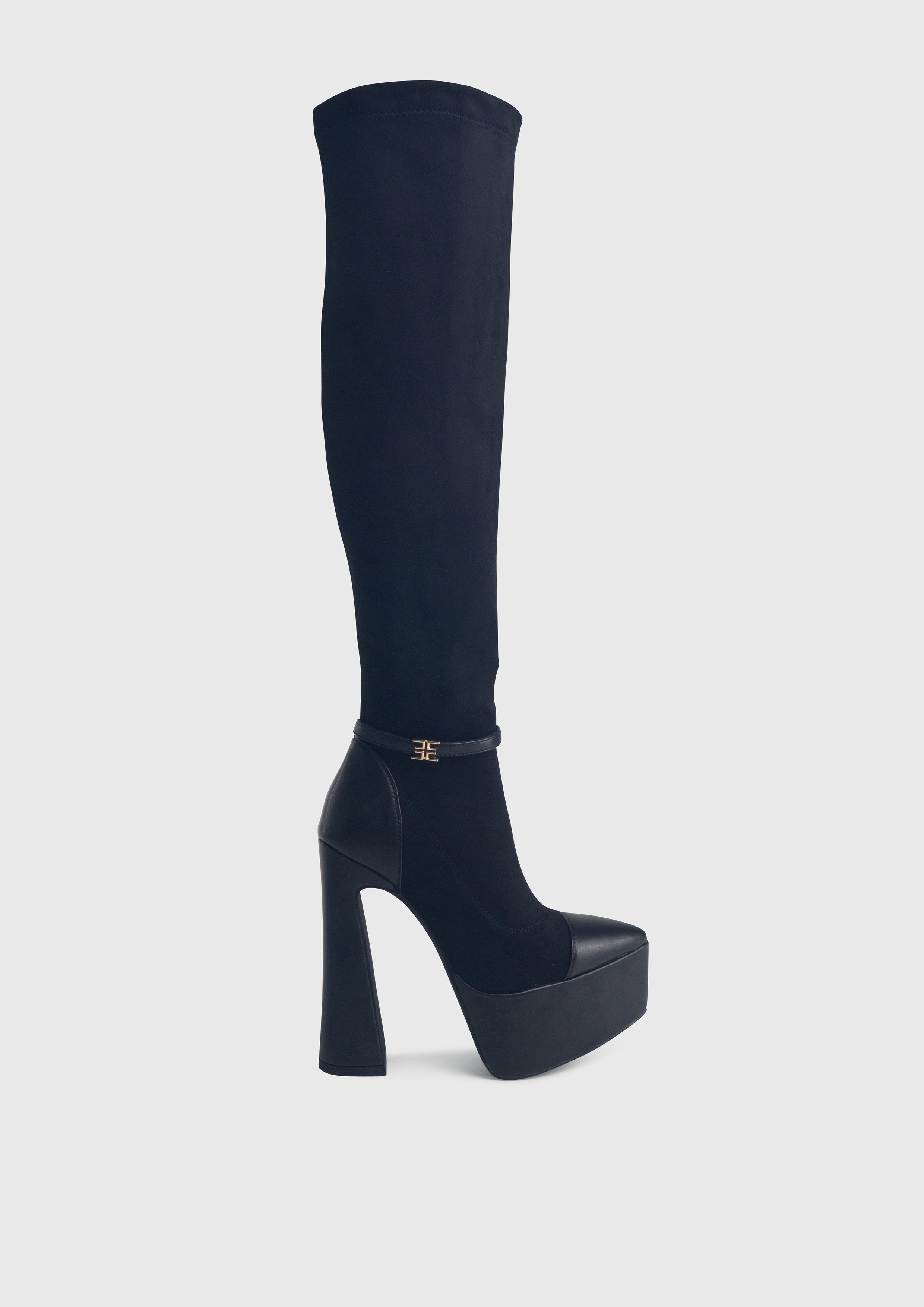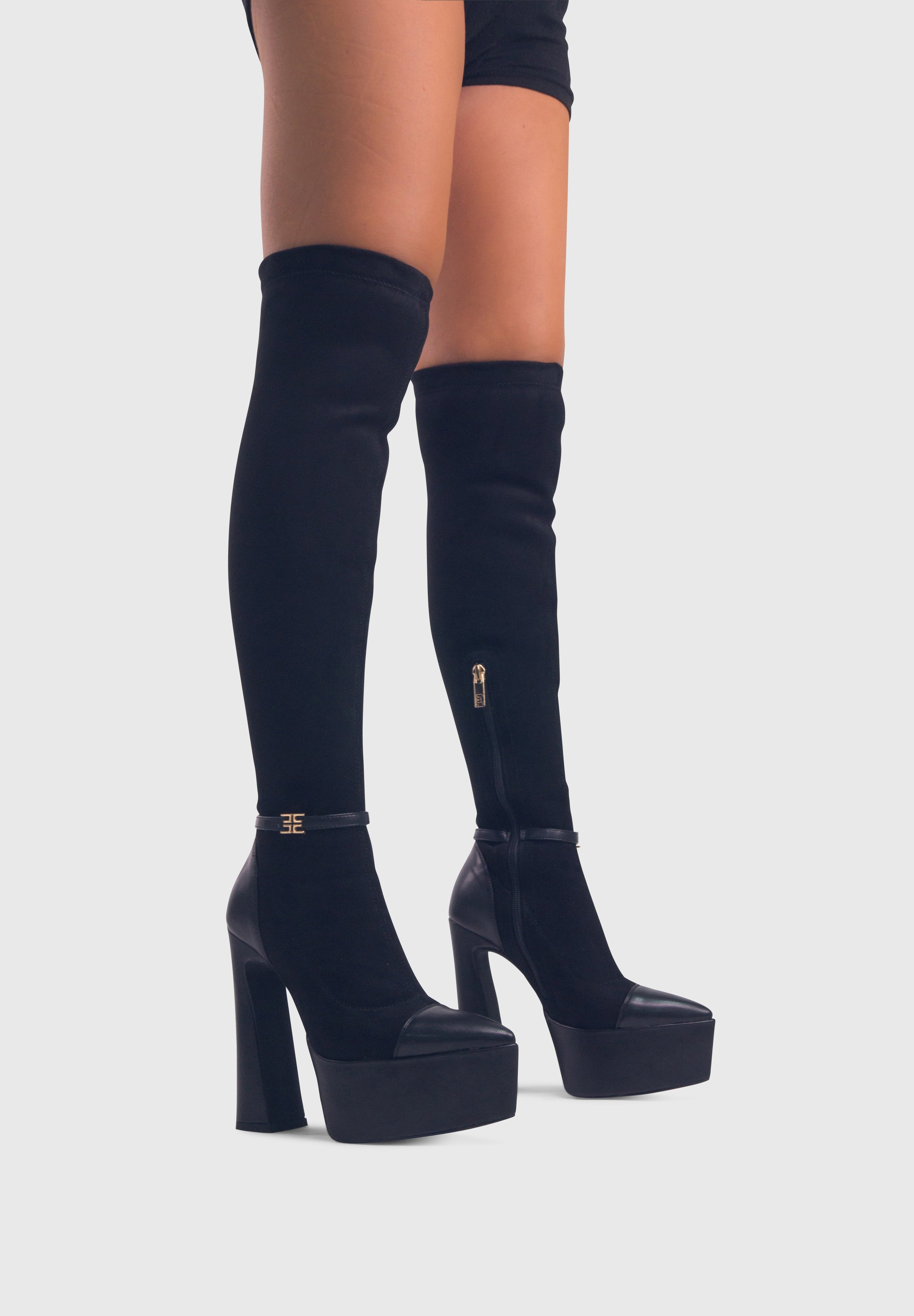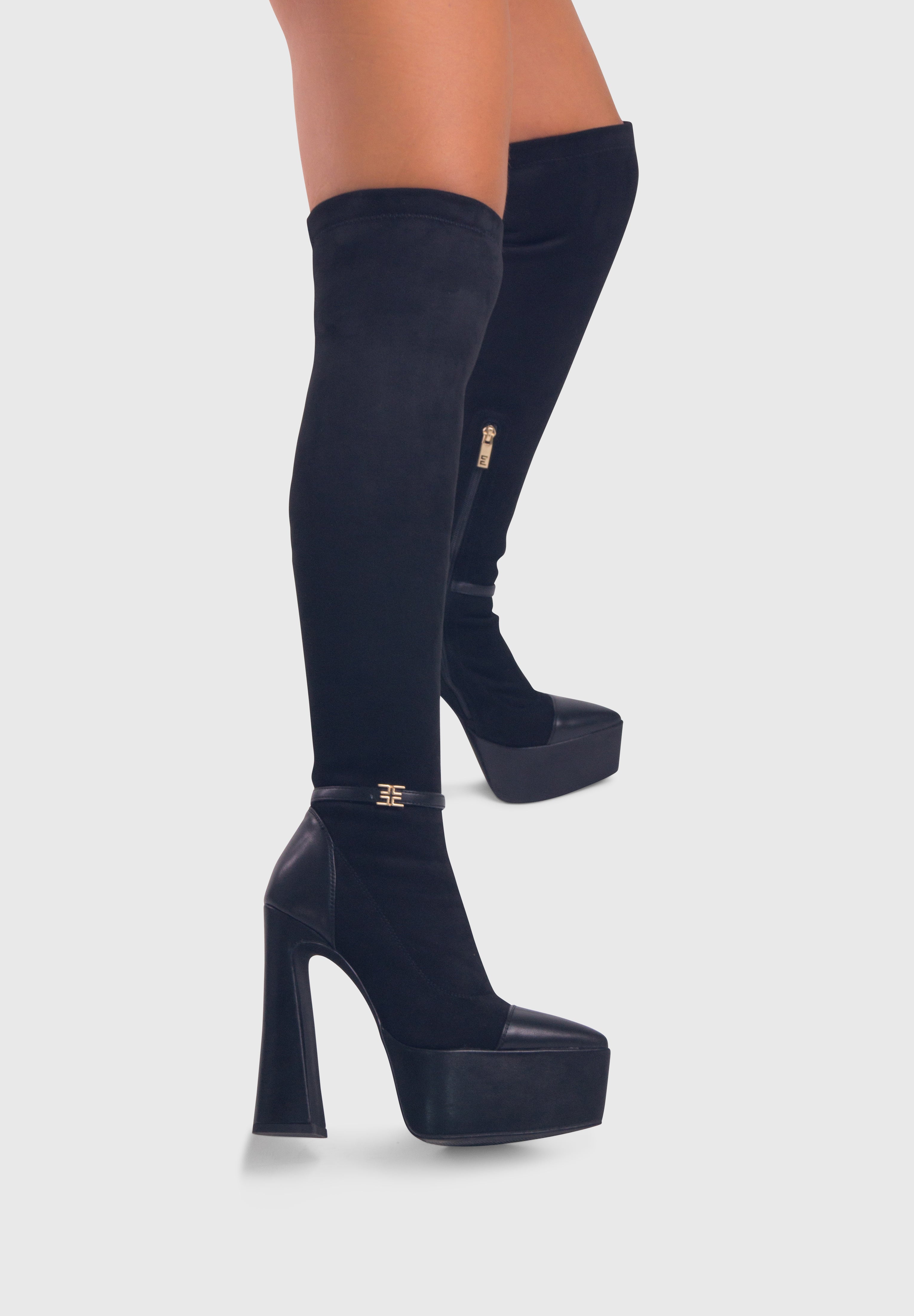 ALICE Nero - Stivali alti cuissard elasticizzati plateau alto tacco largo