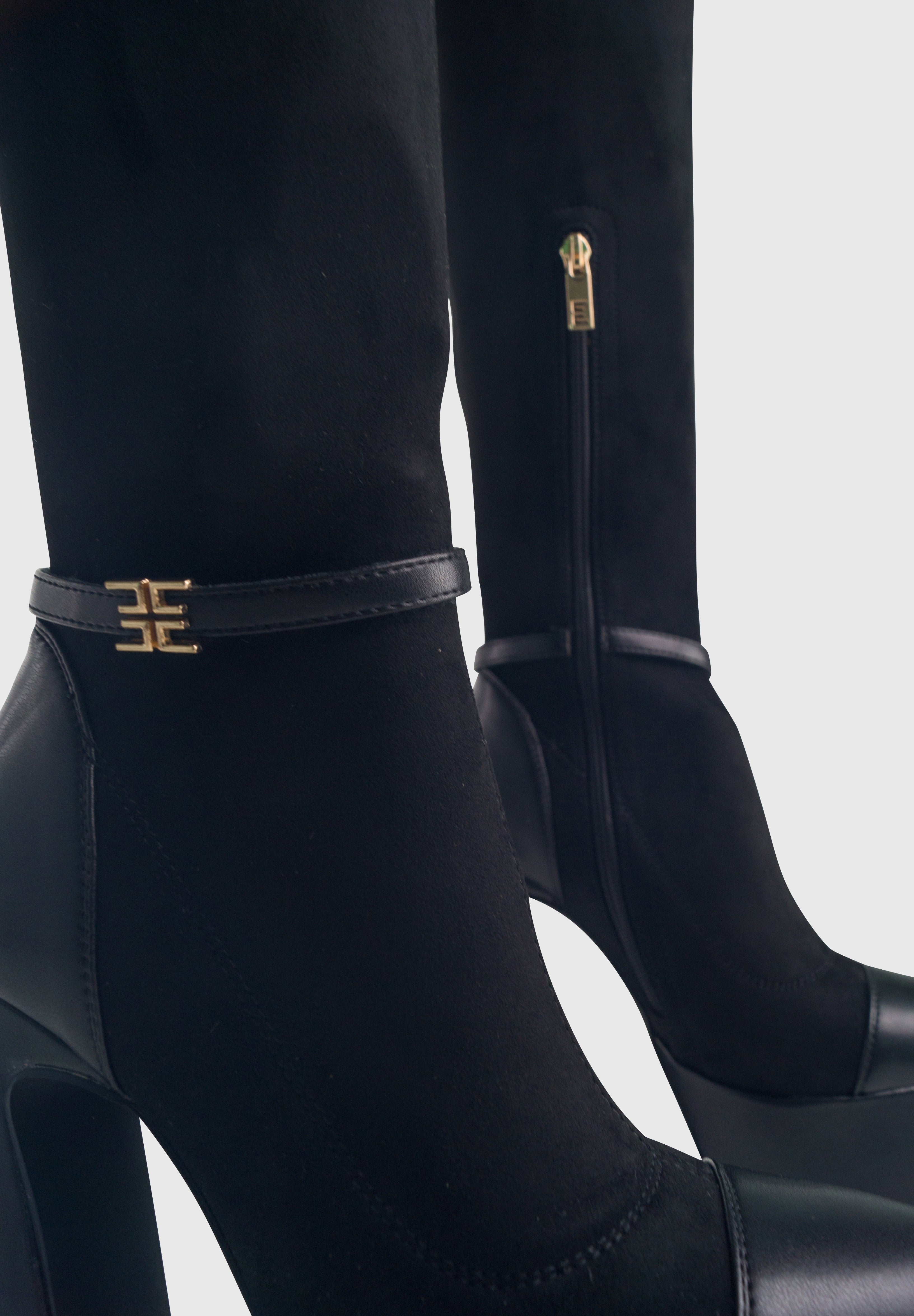 Infatti con plateau alto e tacco largo angolare, questi stivali uniscono eleganza e comodità grazie al gambale elasticizzato, che aderisce perfettamente alla gamba.