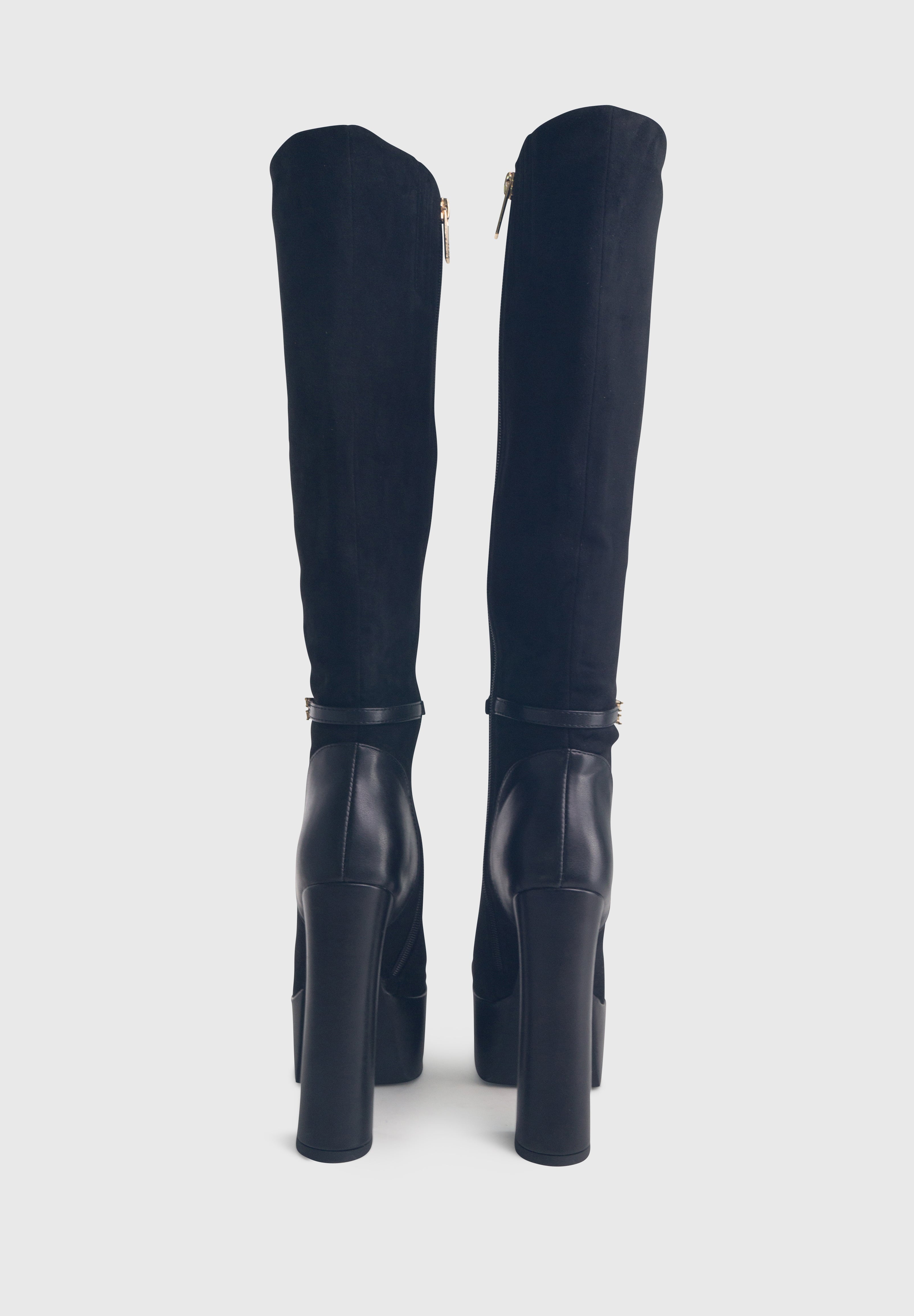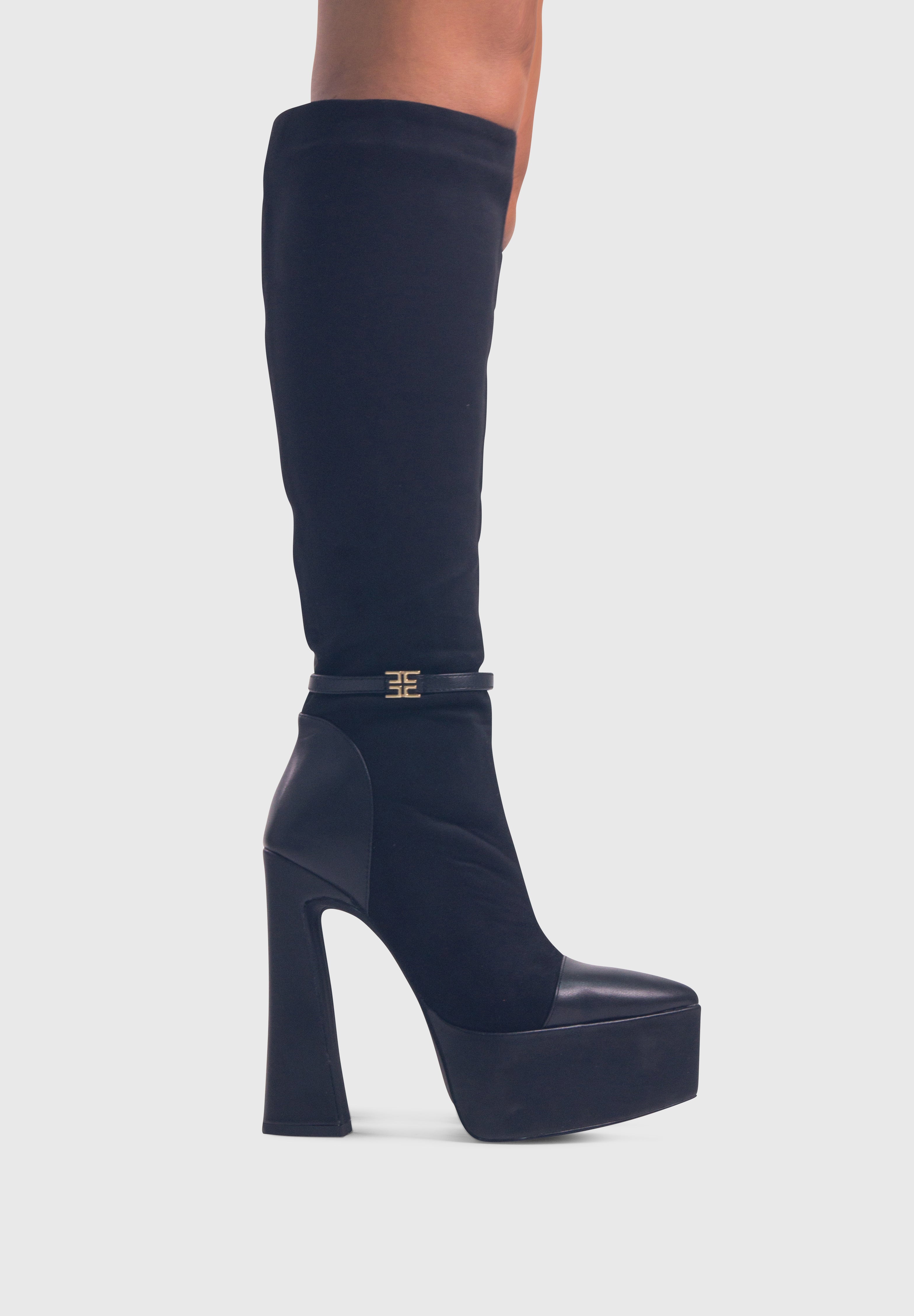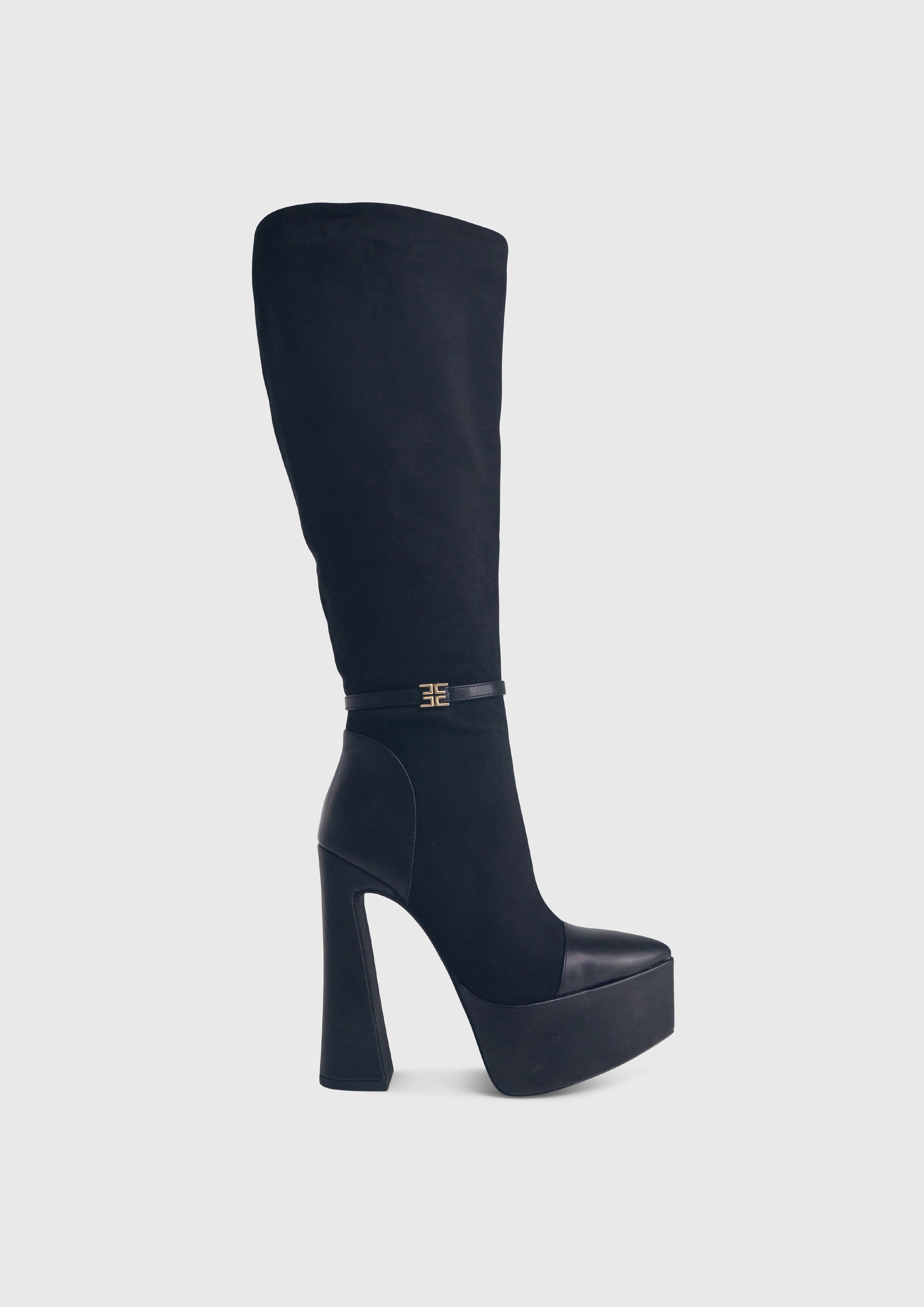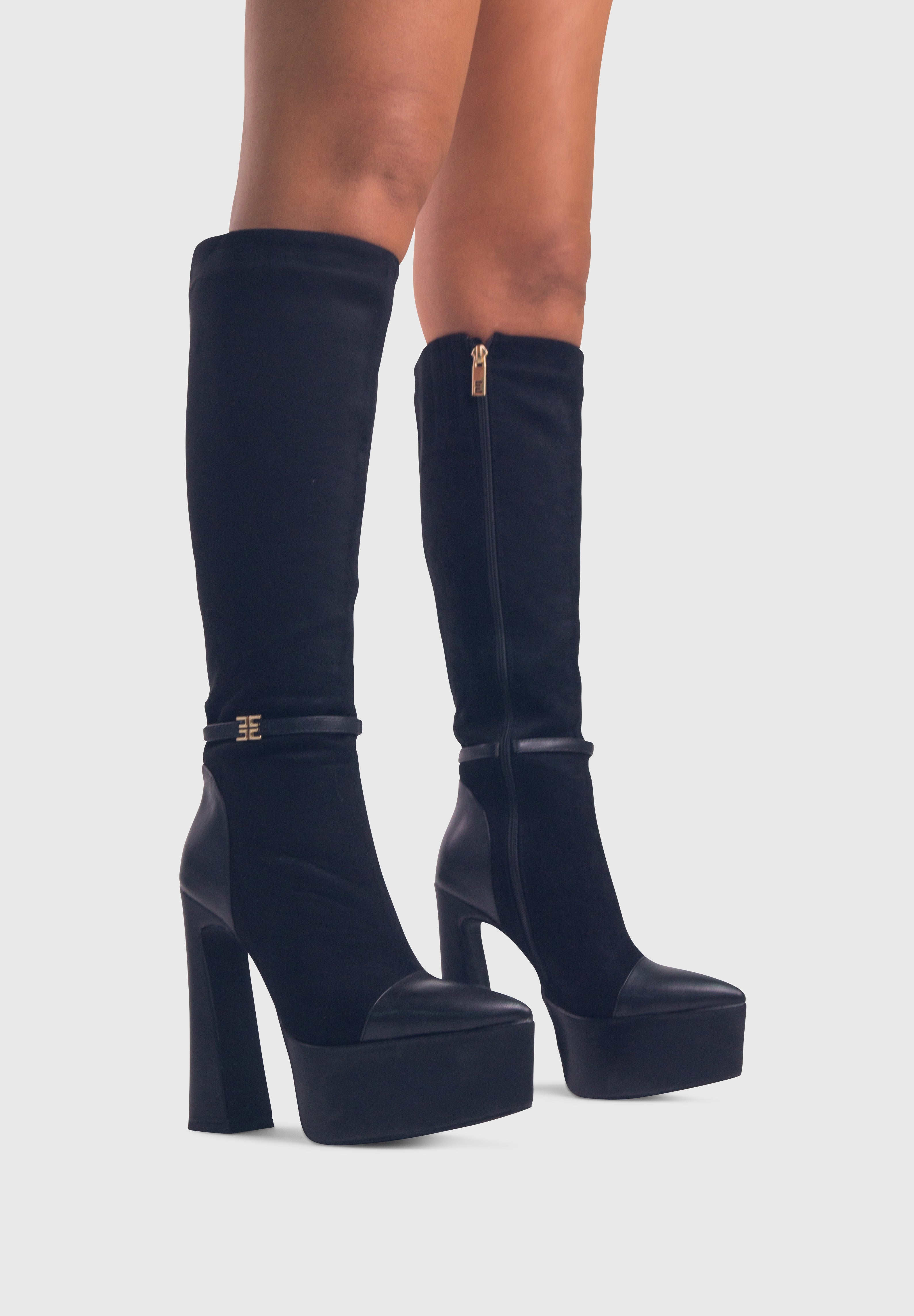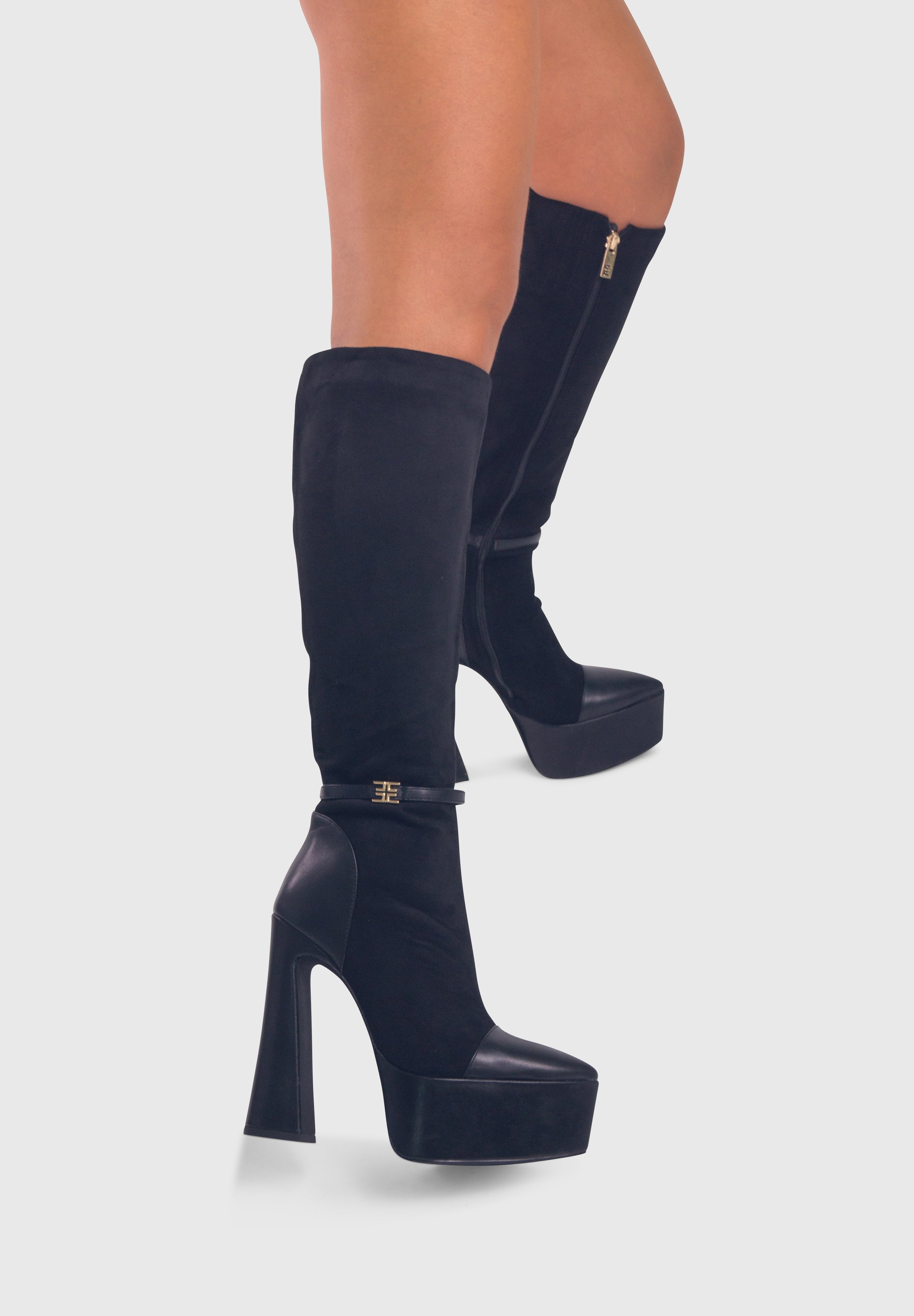 ARIANA Nero - Stivali al ginocchio a punta tacco largo plateau alto