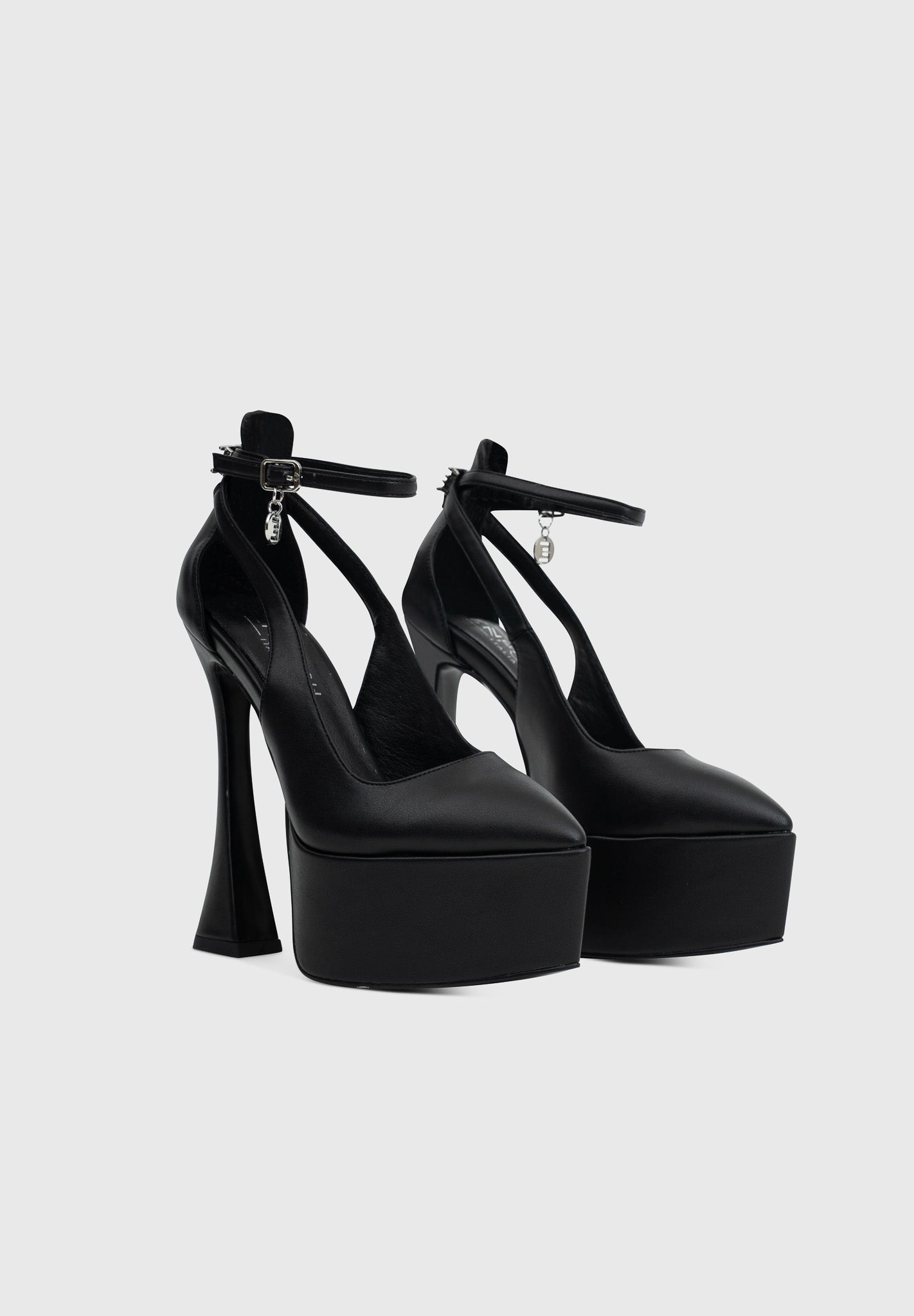 ELIRA Black – Platform pumps with ankle strap and hourglass heel
