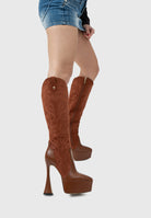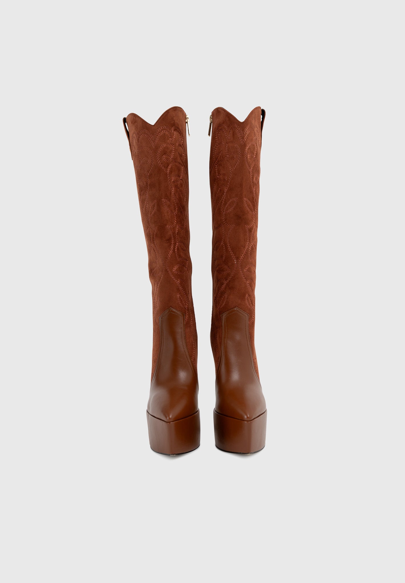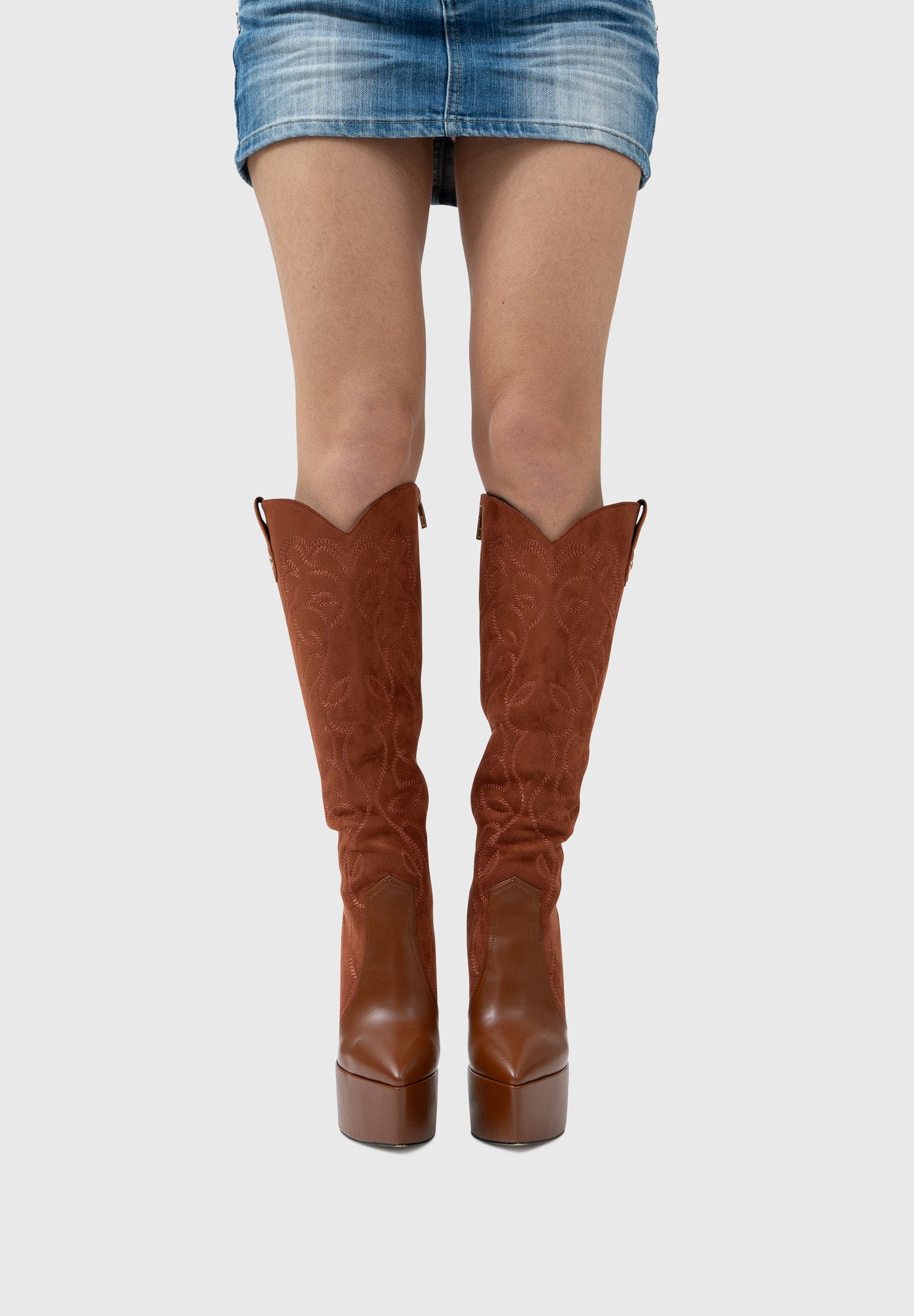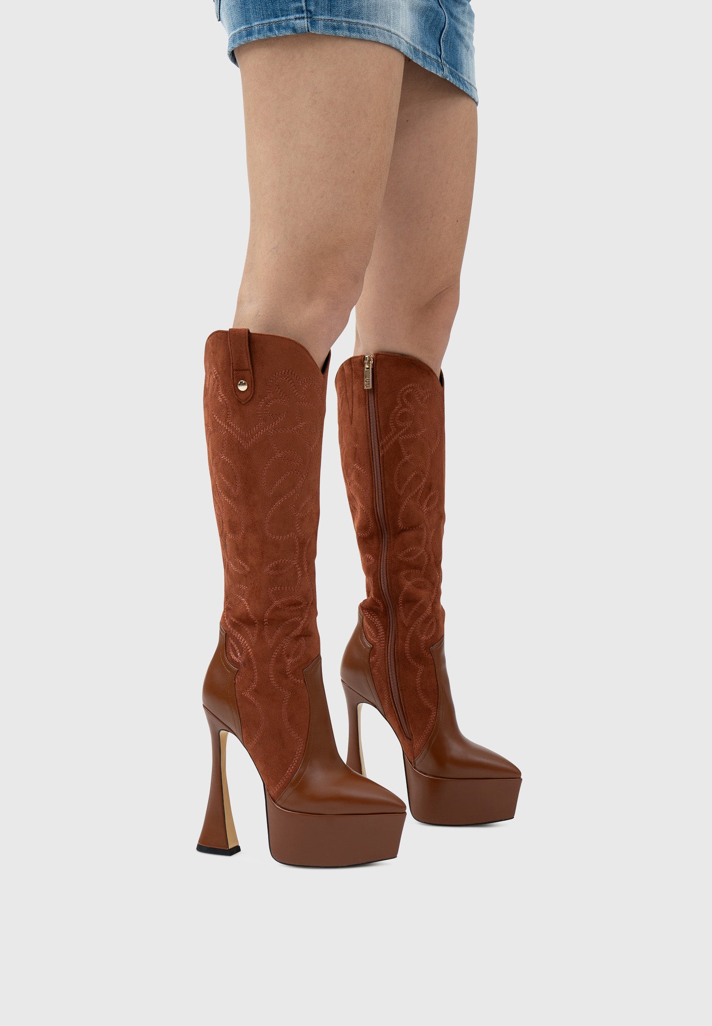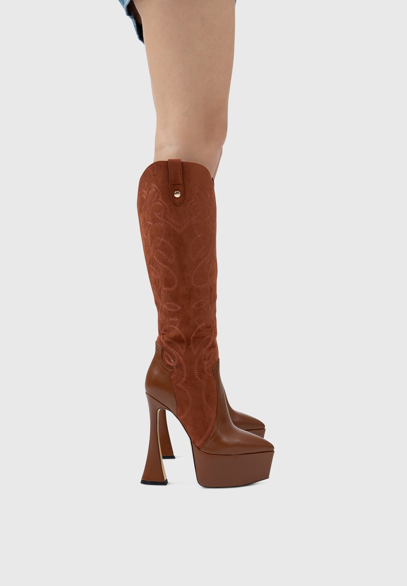 SALOON Cammello – Stivali stile western plateau a punta tacco alto