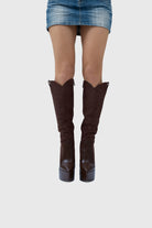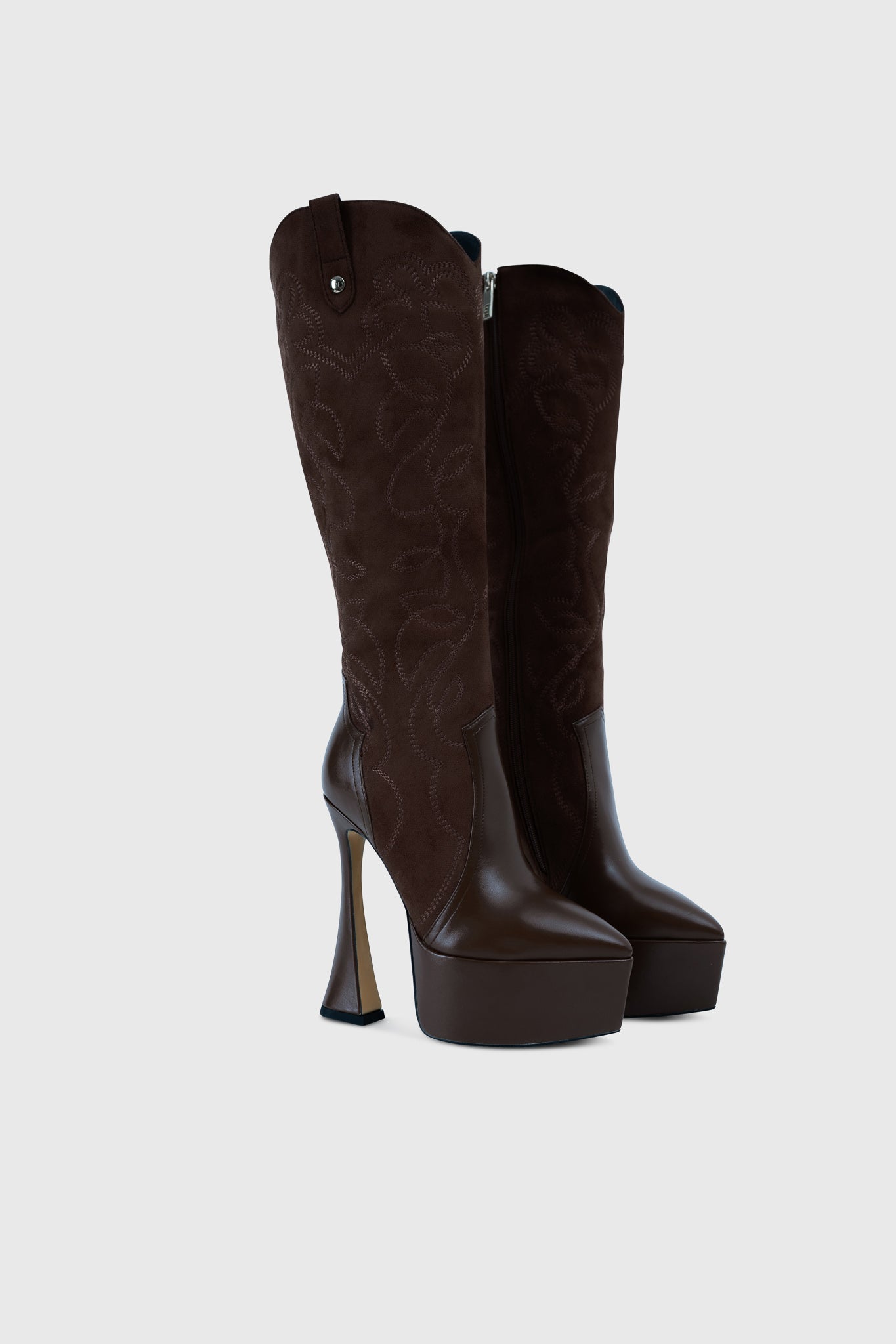 SALOON Marrone – Stivali stile western plateau a punta tacco alto