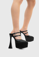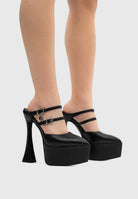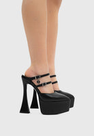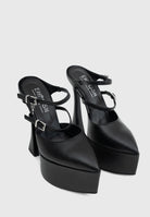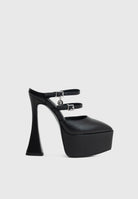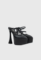 The dramatic maxi platform ensures balance and strong visual presence while maintaining a sleek feminine silhouette. The black color makes Sila a versatile statement piece, perfect for evening outfits, elegant styling, or bold minimalist looks.