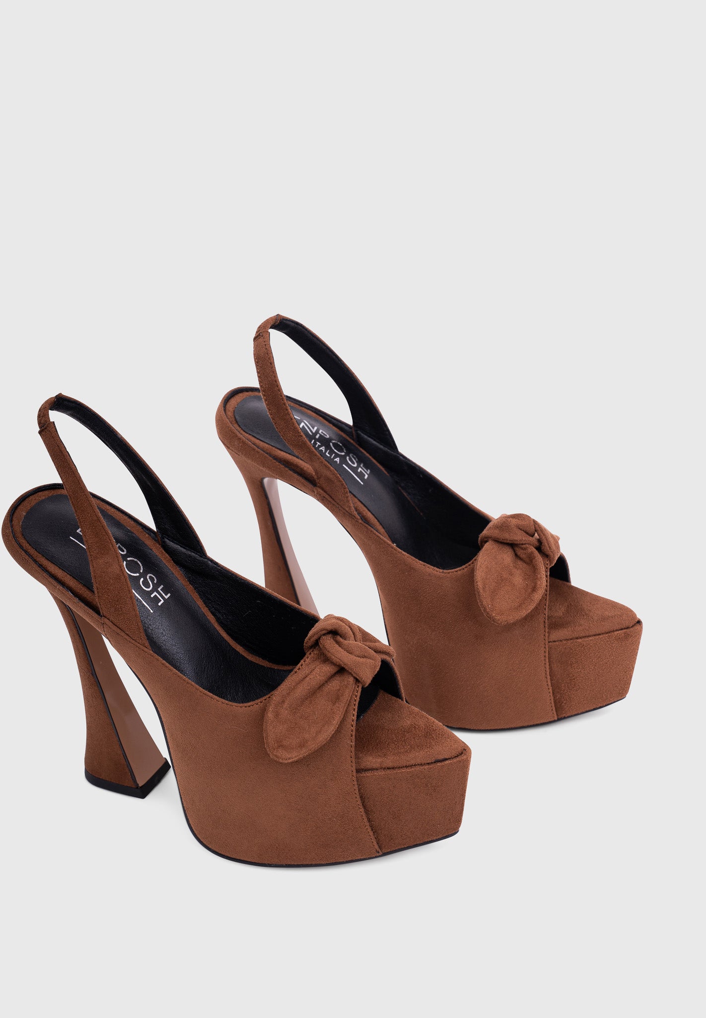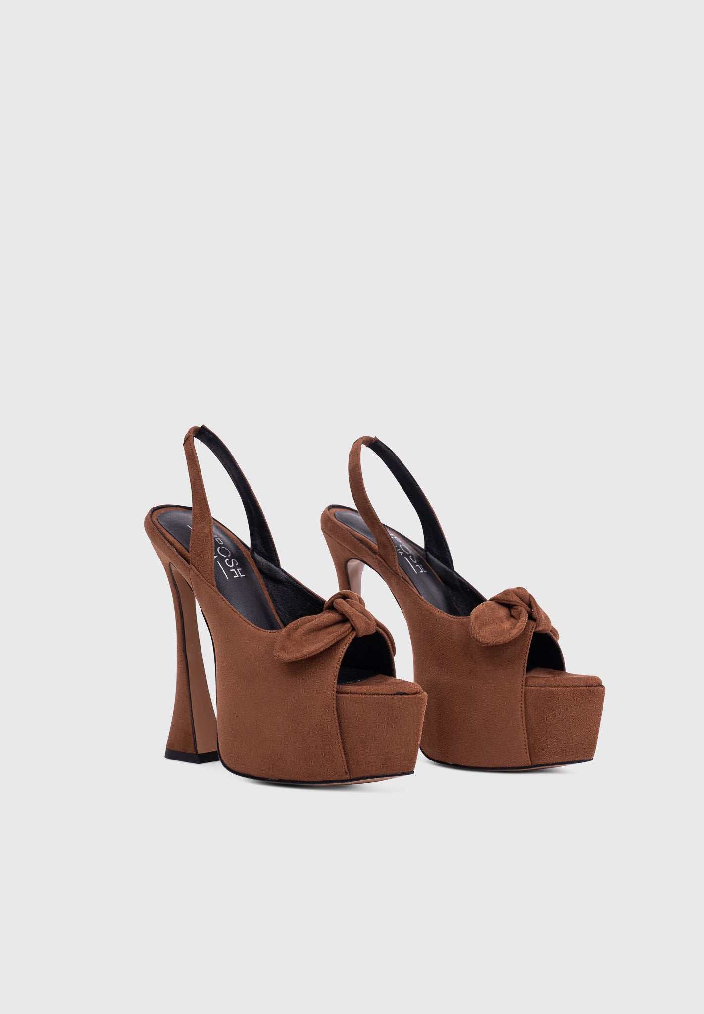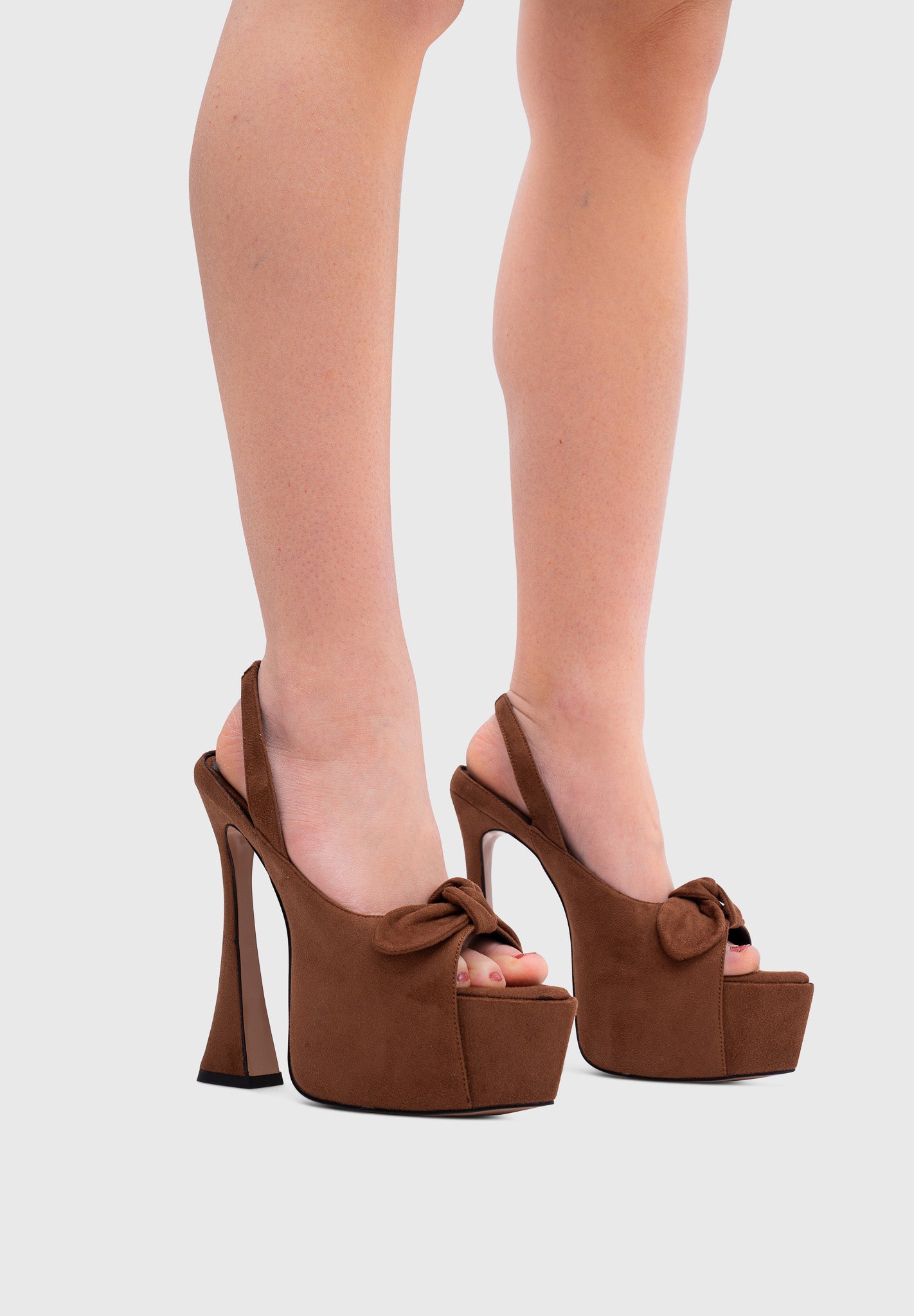 Crafted from premium vegan suede-effect material, these platform sandals combine modern elegance with bold proportions. The sculptural hourglass heel and dramatic maxi platform elongate the silhouette while maintaining stability.