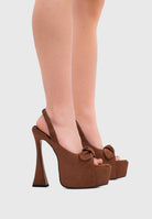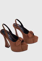 VAYLA Camel – Platform Sandals with Front Bow and Hourglass Heel