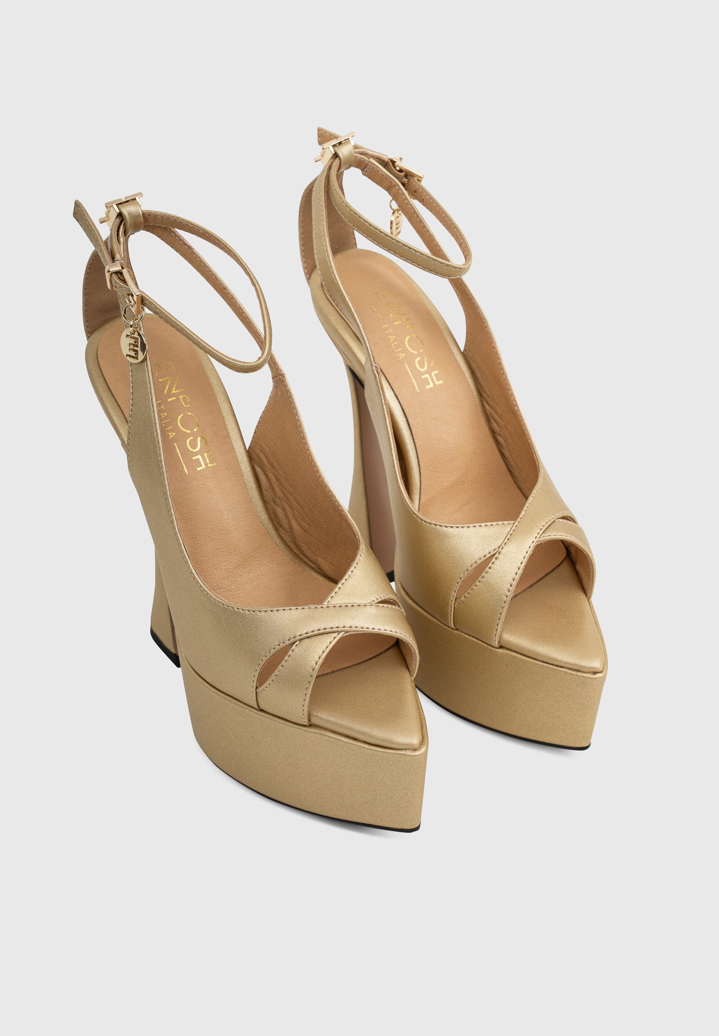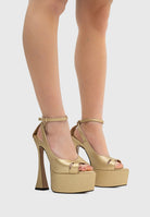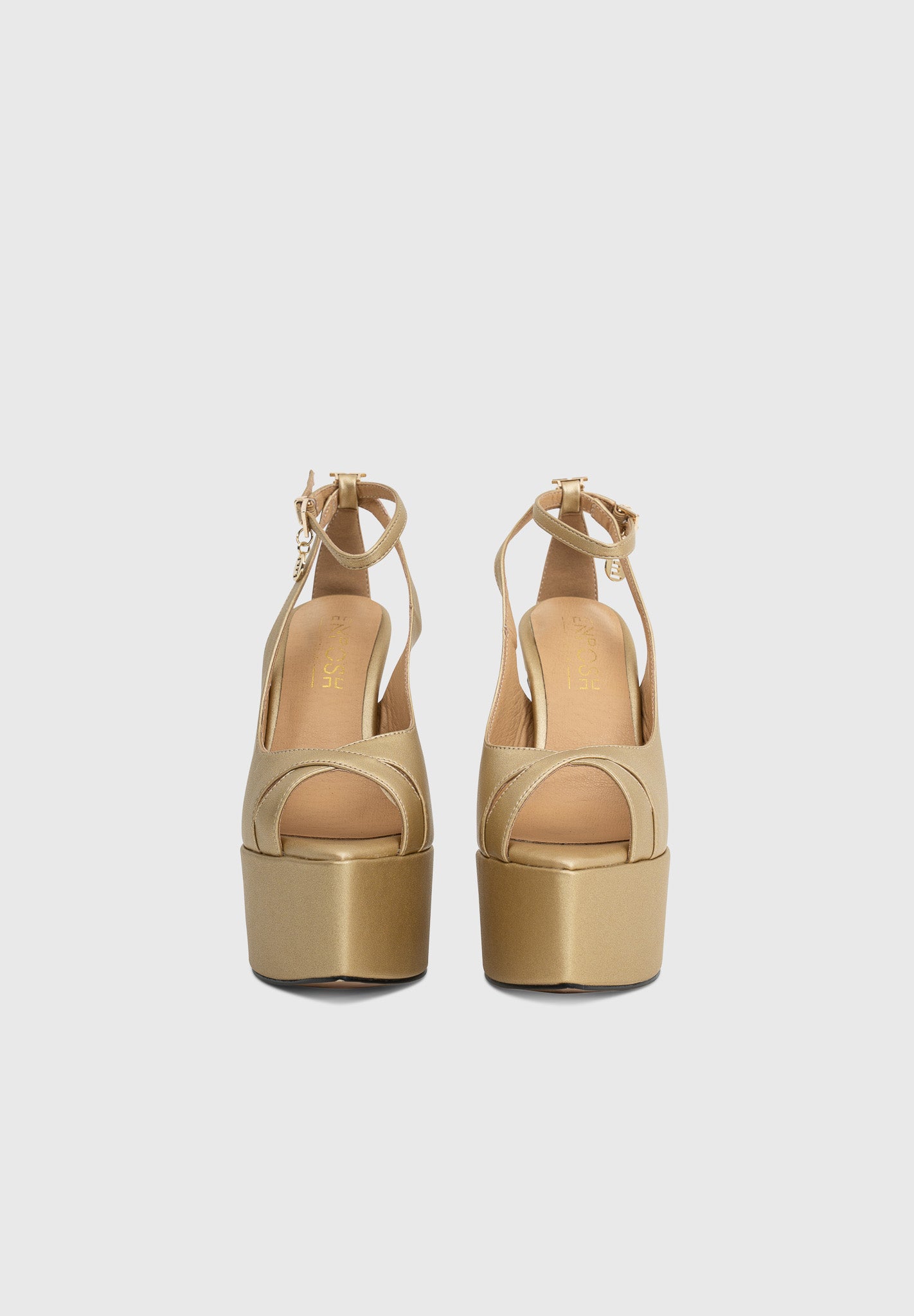ZENDA Gold – Platform Sandals with Hourglass Heel and Ankle Strap