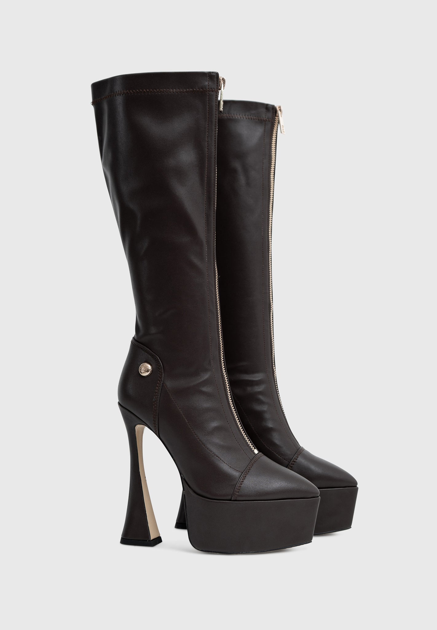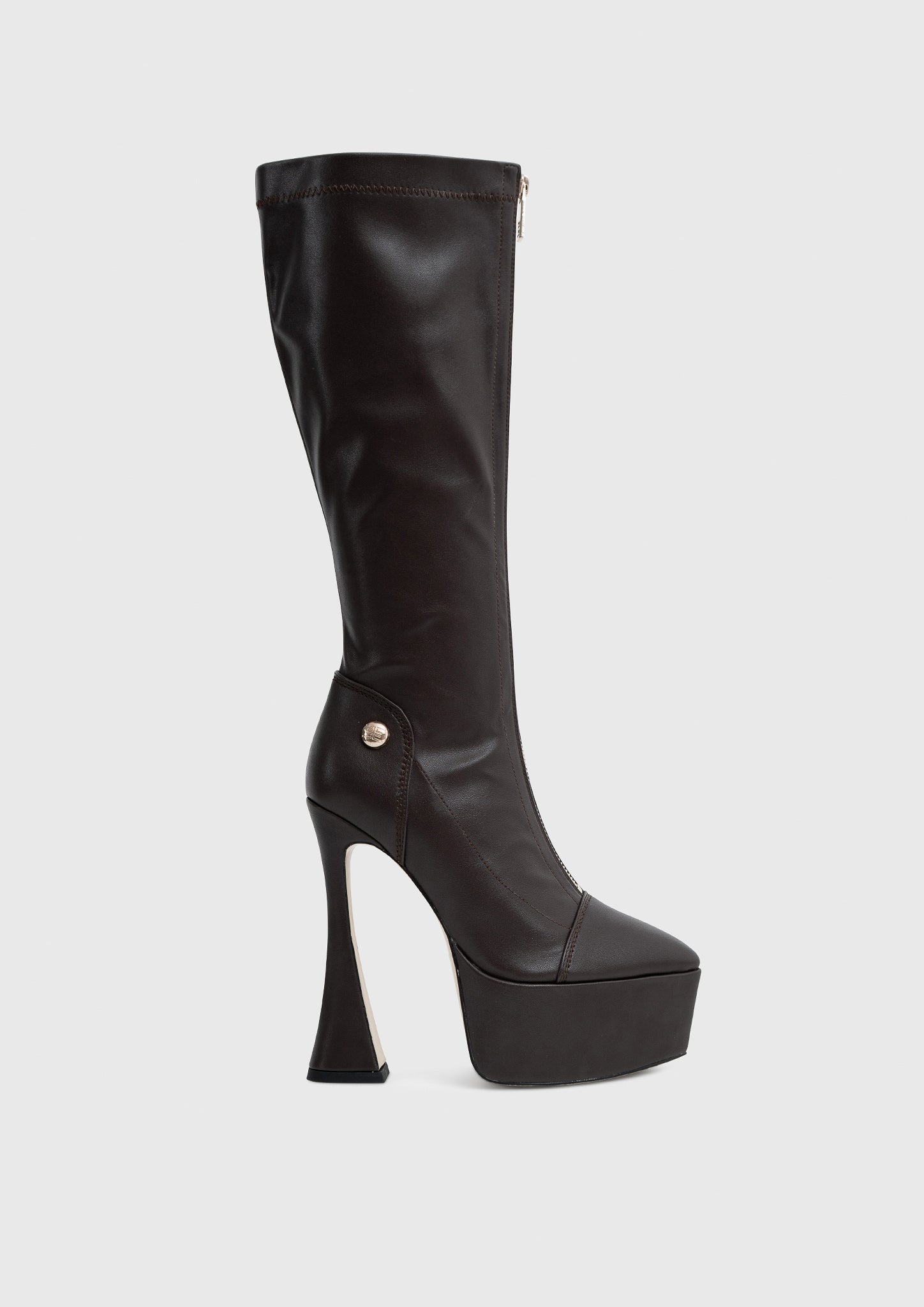 La tomaia in similpelle vegana premium abbraccia la gamba con un gambale morbido e slanciato, definito da cuciture sartoriali e da una zip centrale per una calzata pratica.