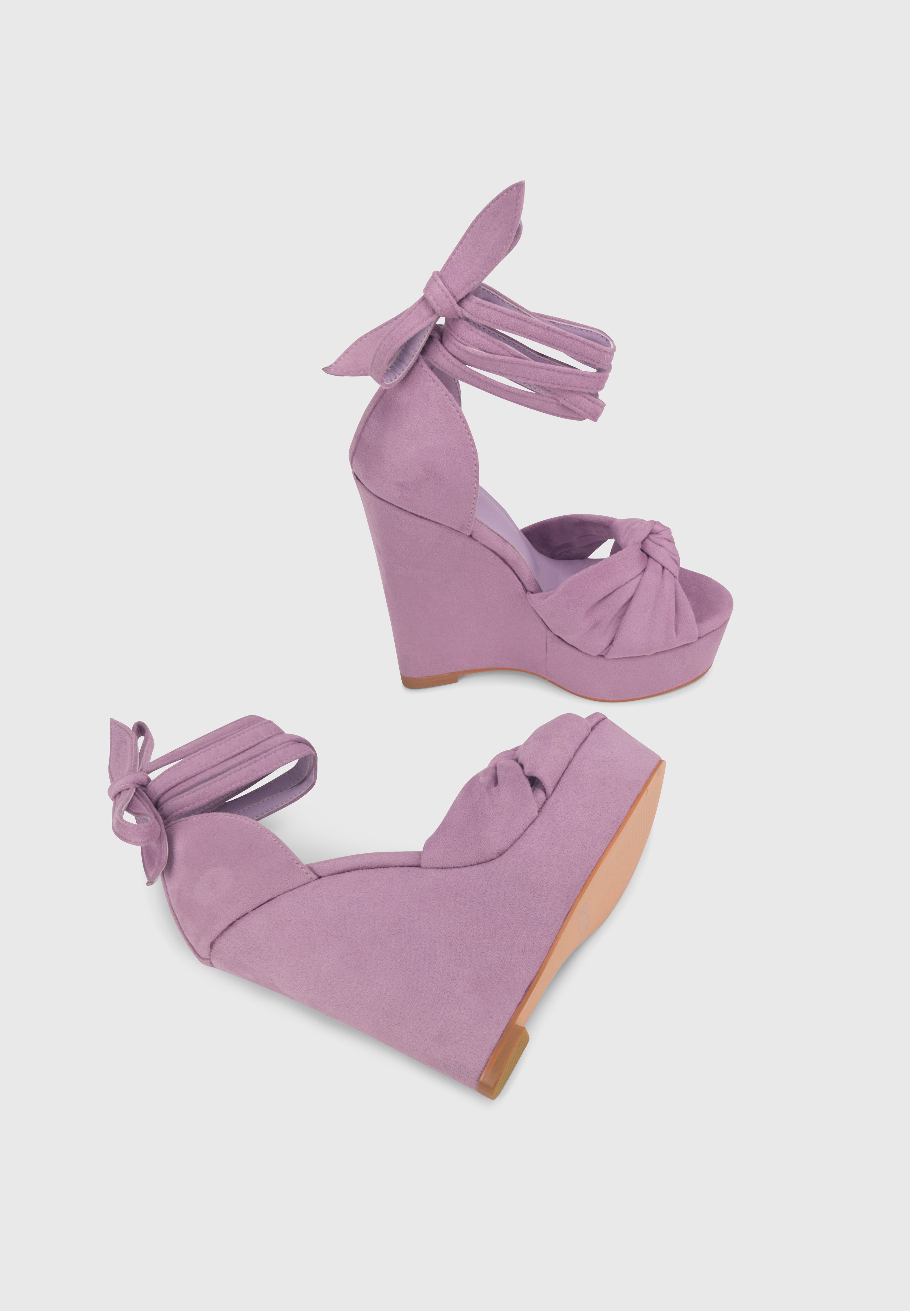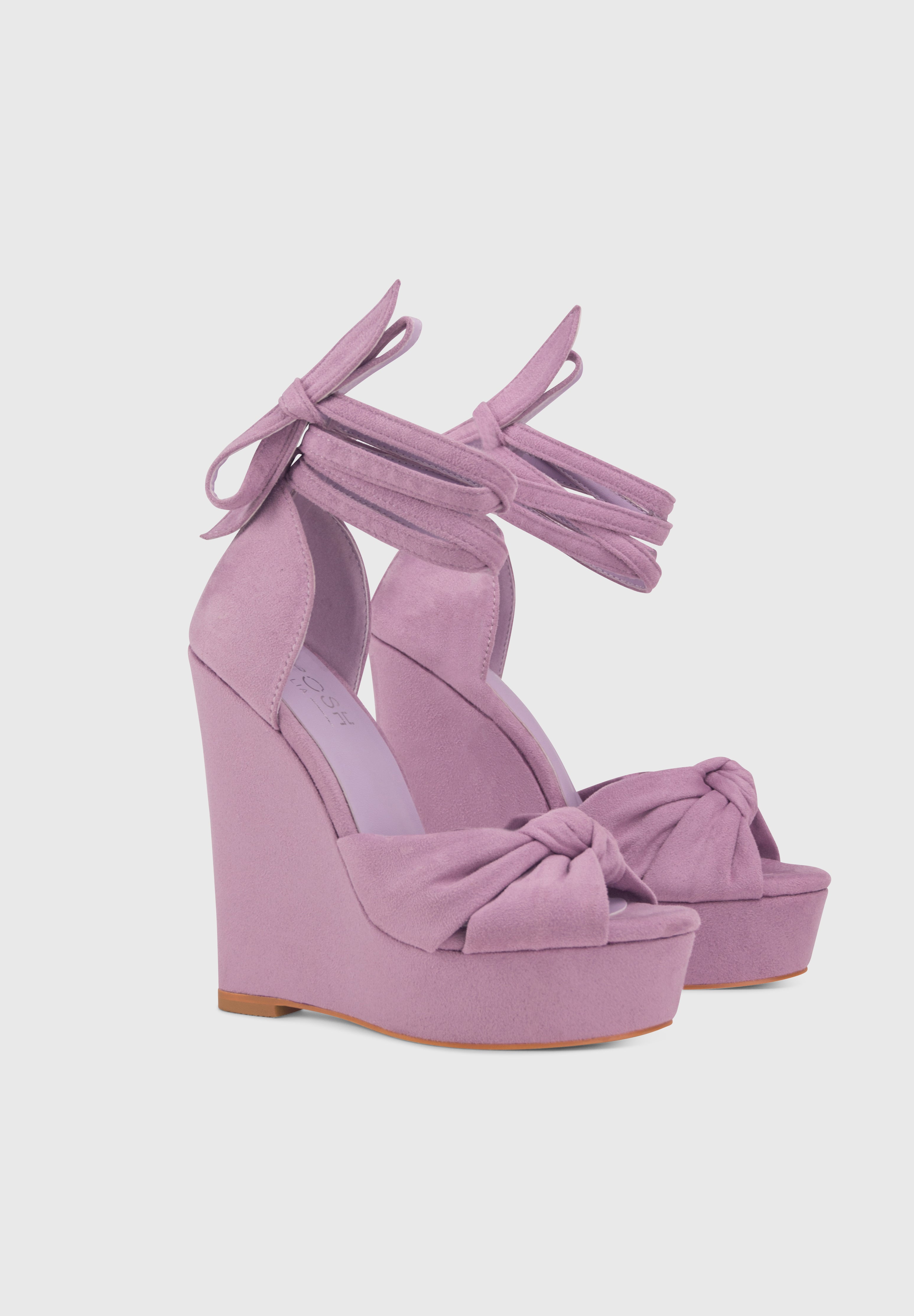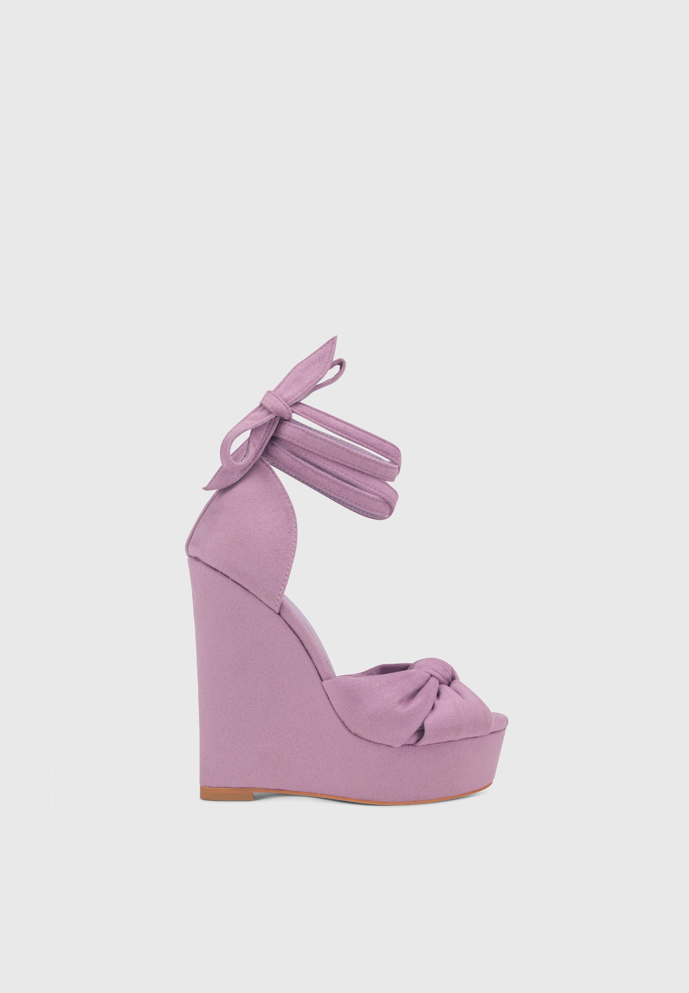 ALARA Lavanda - Sandali similcamoscio con lacci zeppa tacco 15 cm