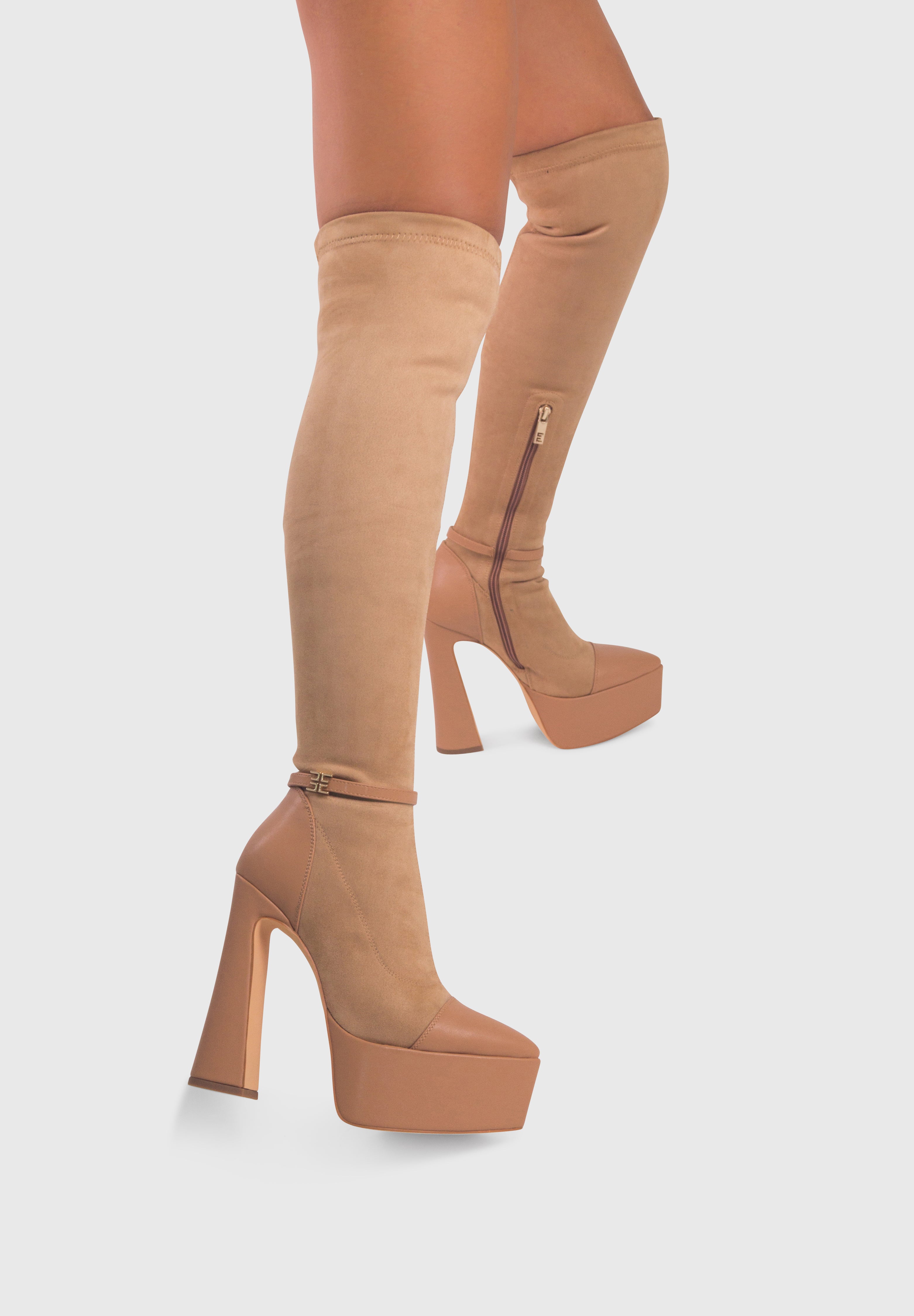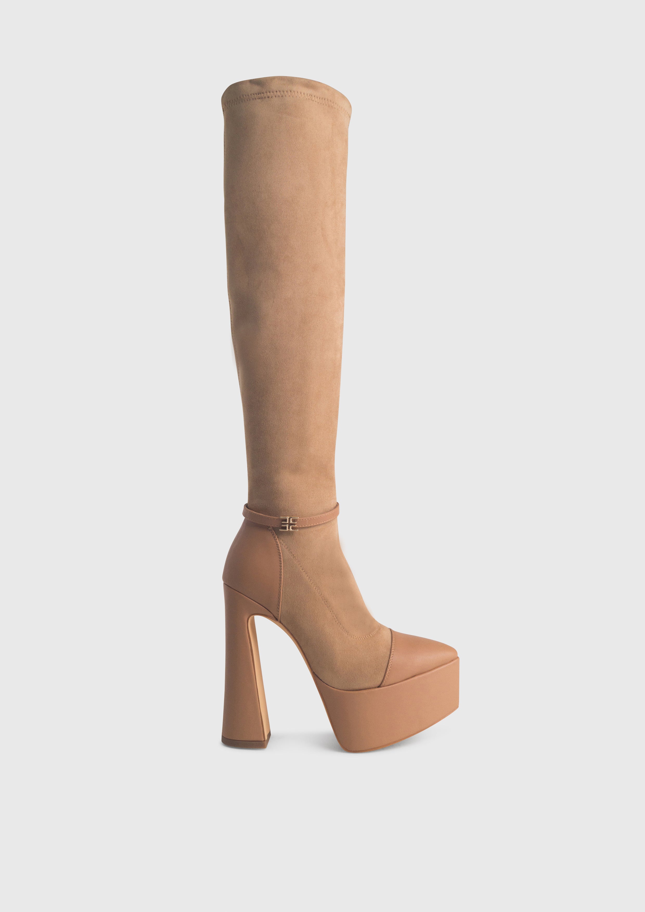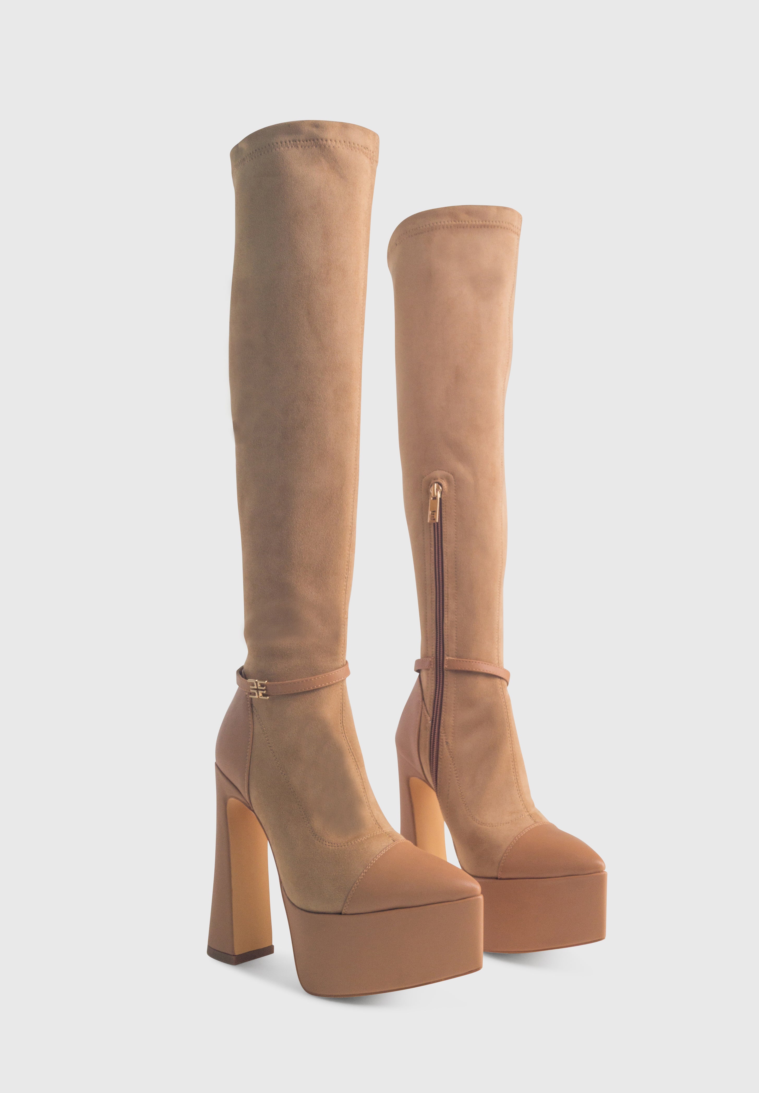 ALICE Cappuccino - Stivali alti cuissard elasticizzati plateau alto tacco largo