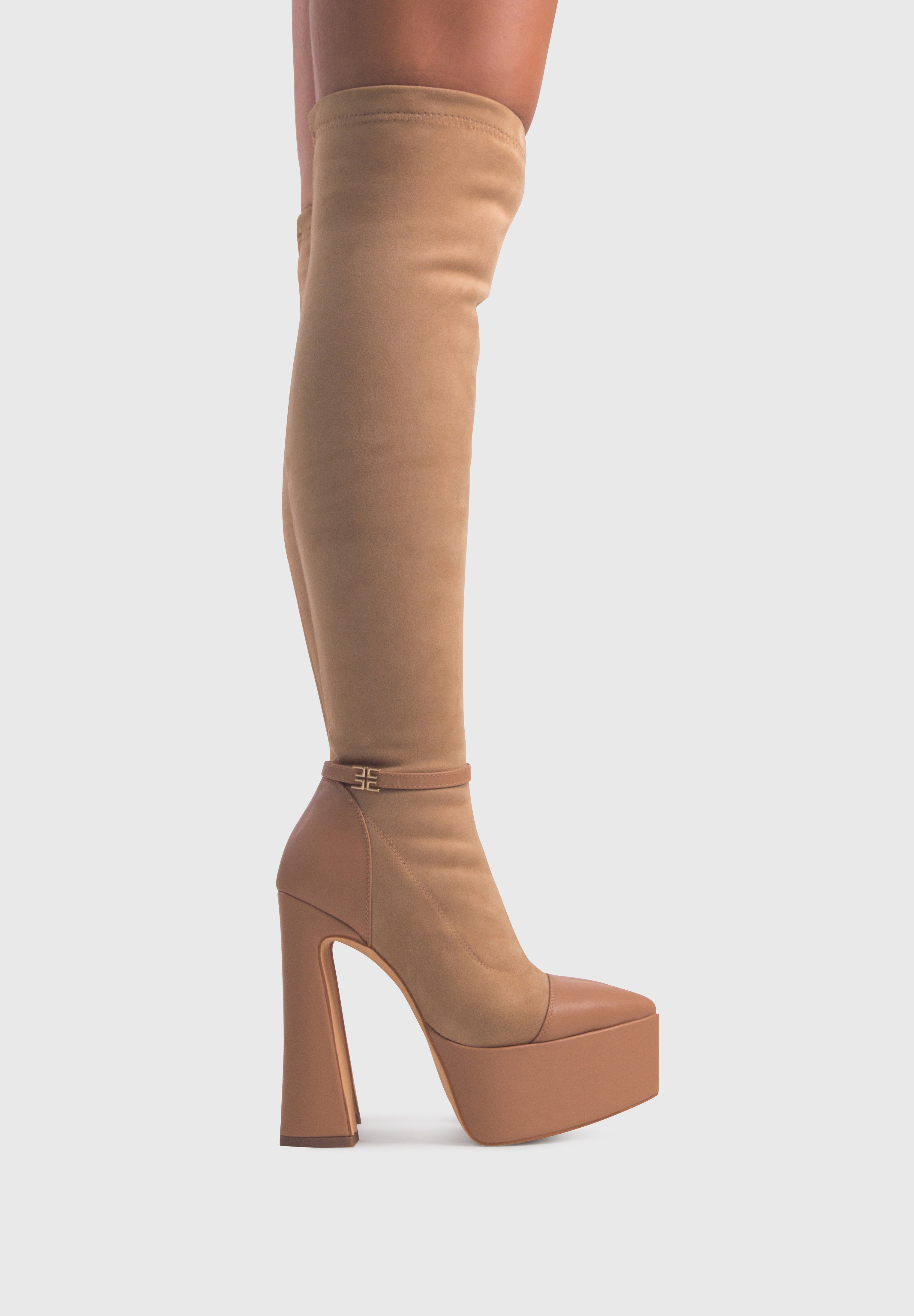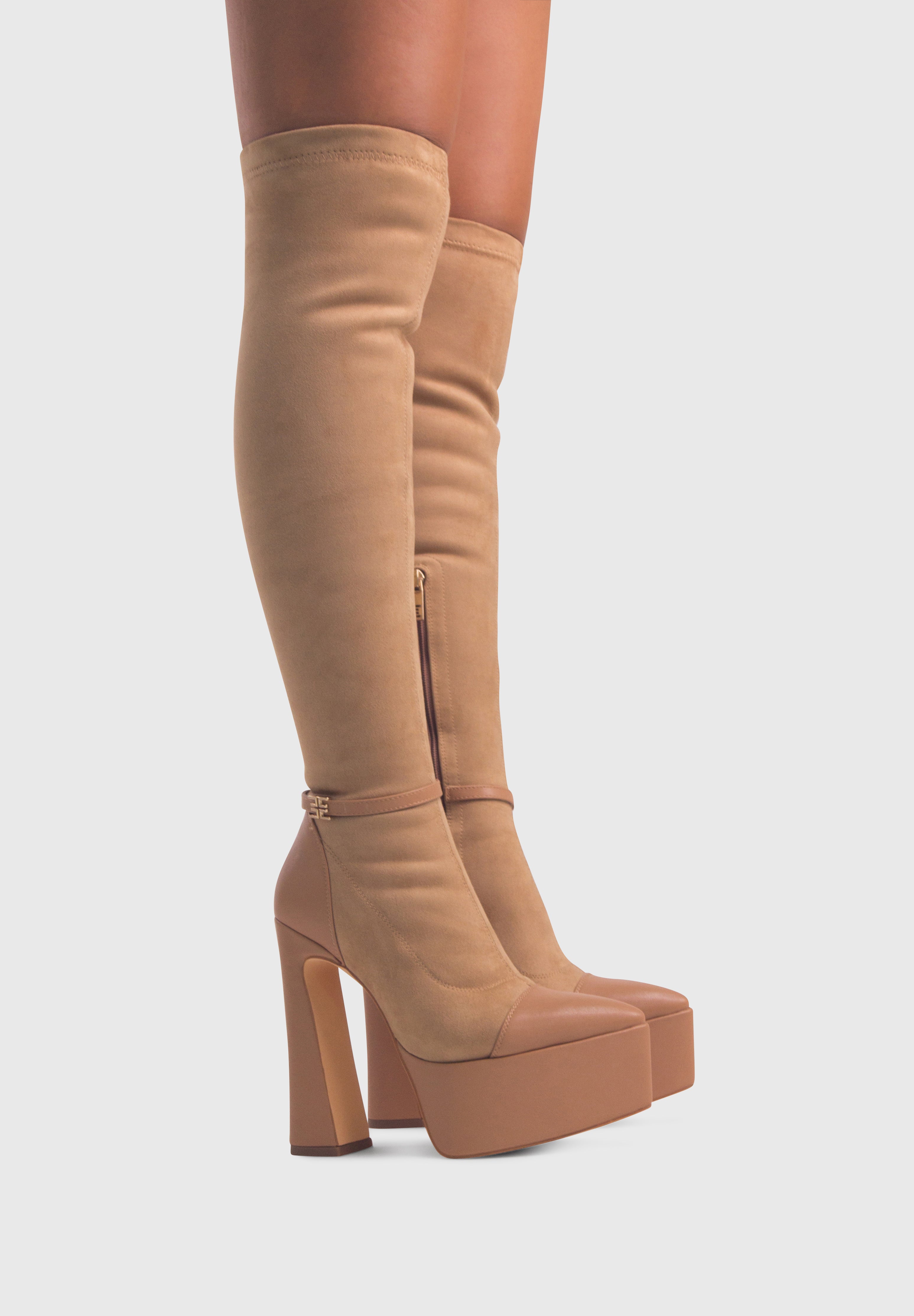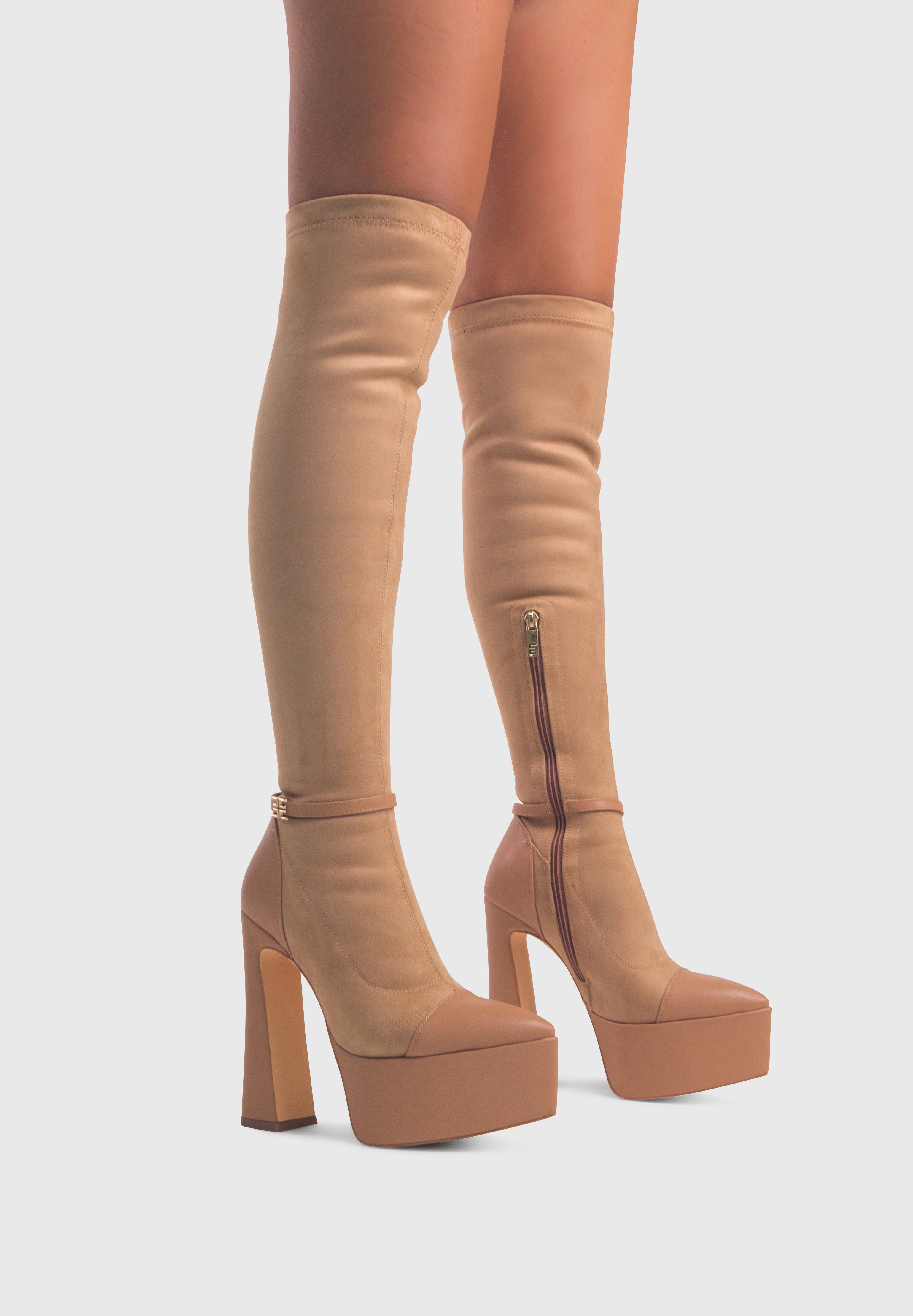 ALICE Cappuccino - Stivali alti cuissard elasticizzati plateau alto tacco largo