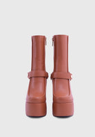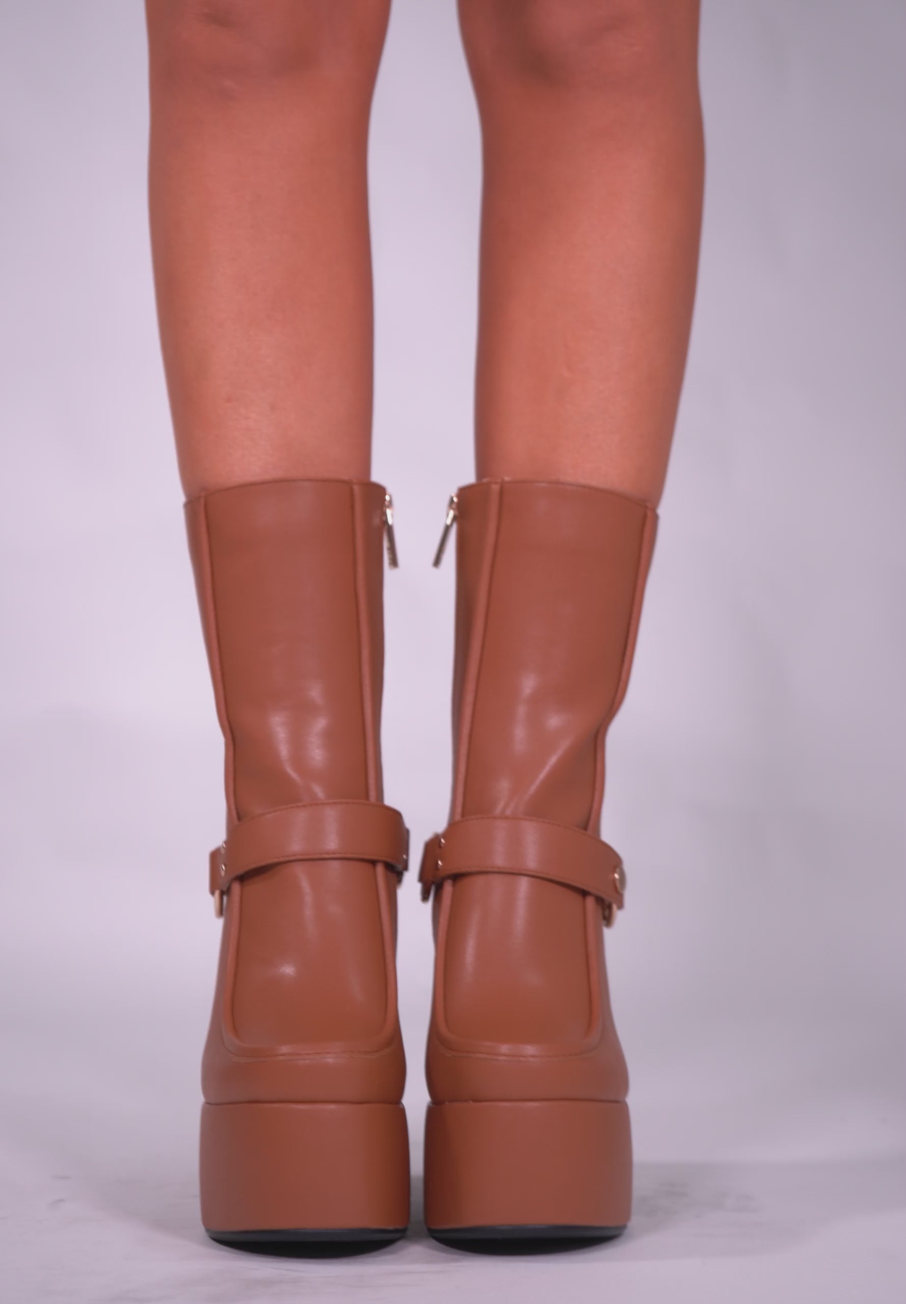 ECLIPSE Camel – Mid-calf faux-leather boots with high platform