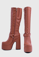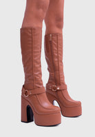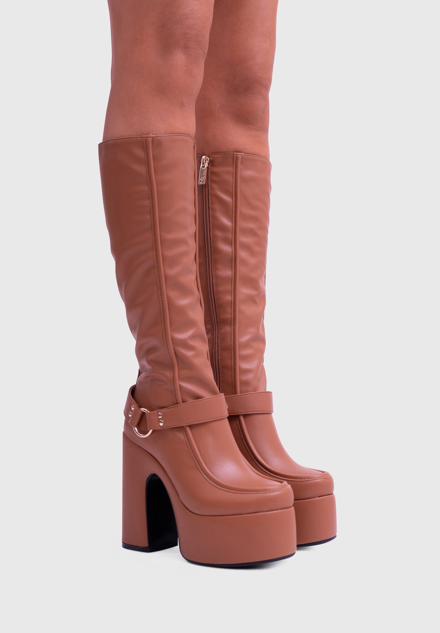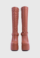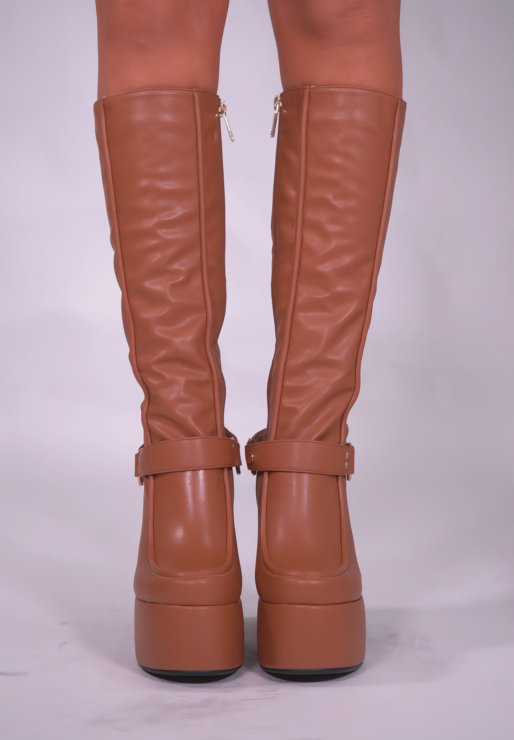 FLAMMA Camel – Knee-high faux-leather boots with high platform and removable buckle