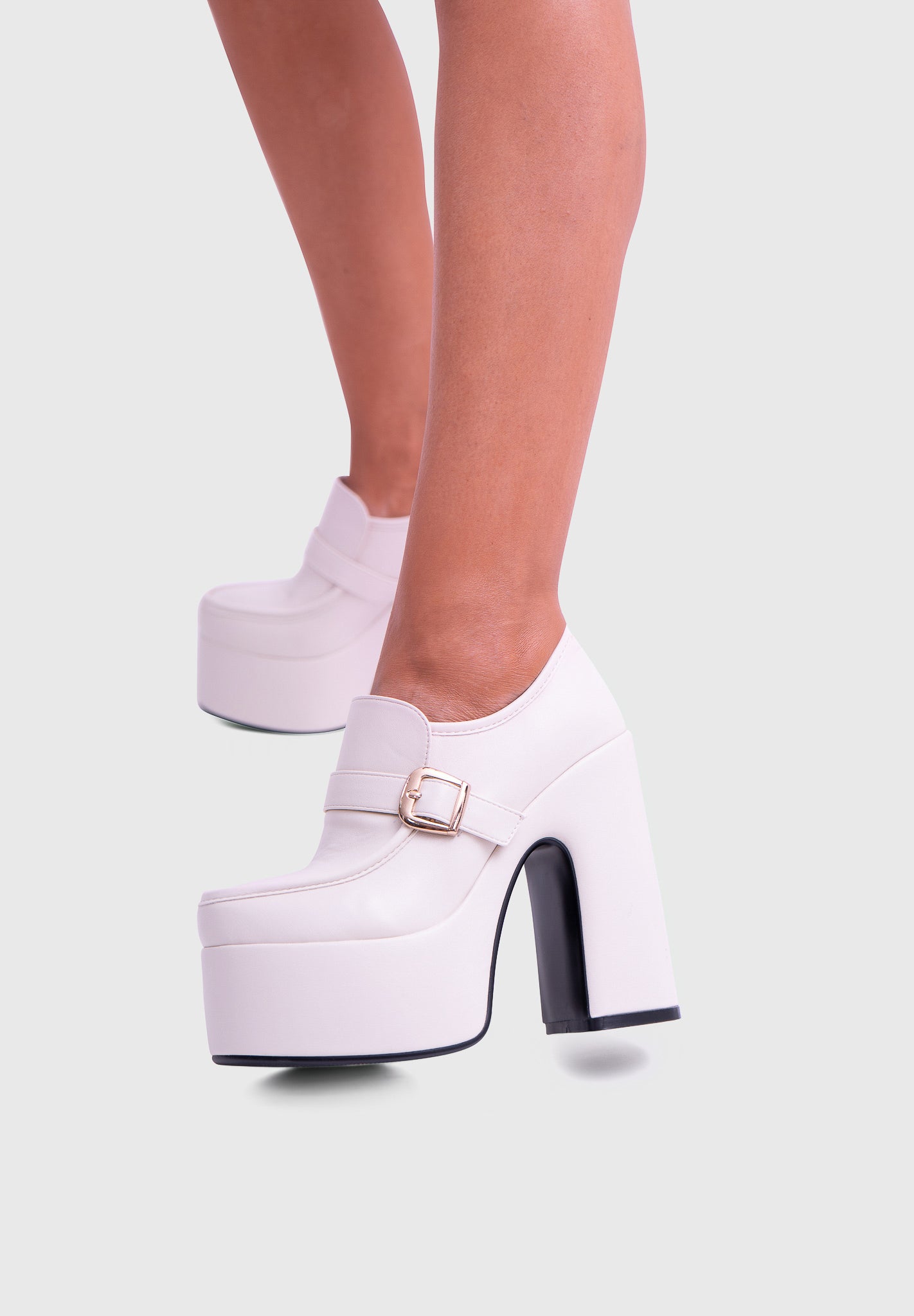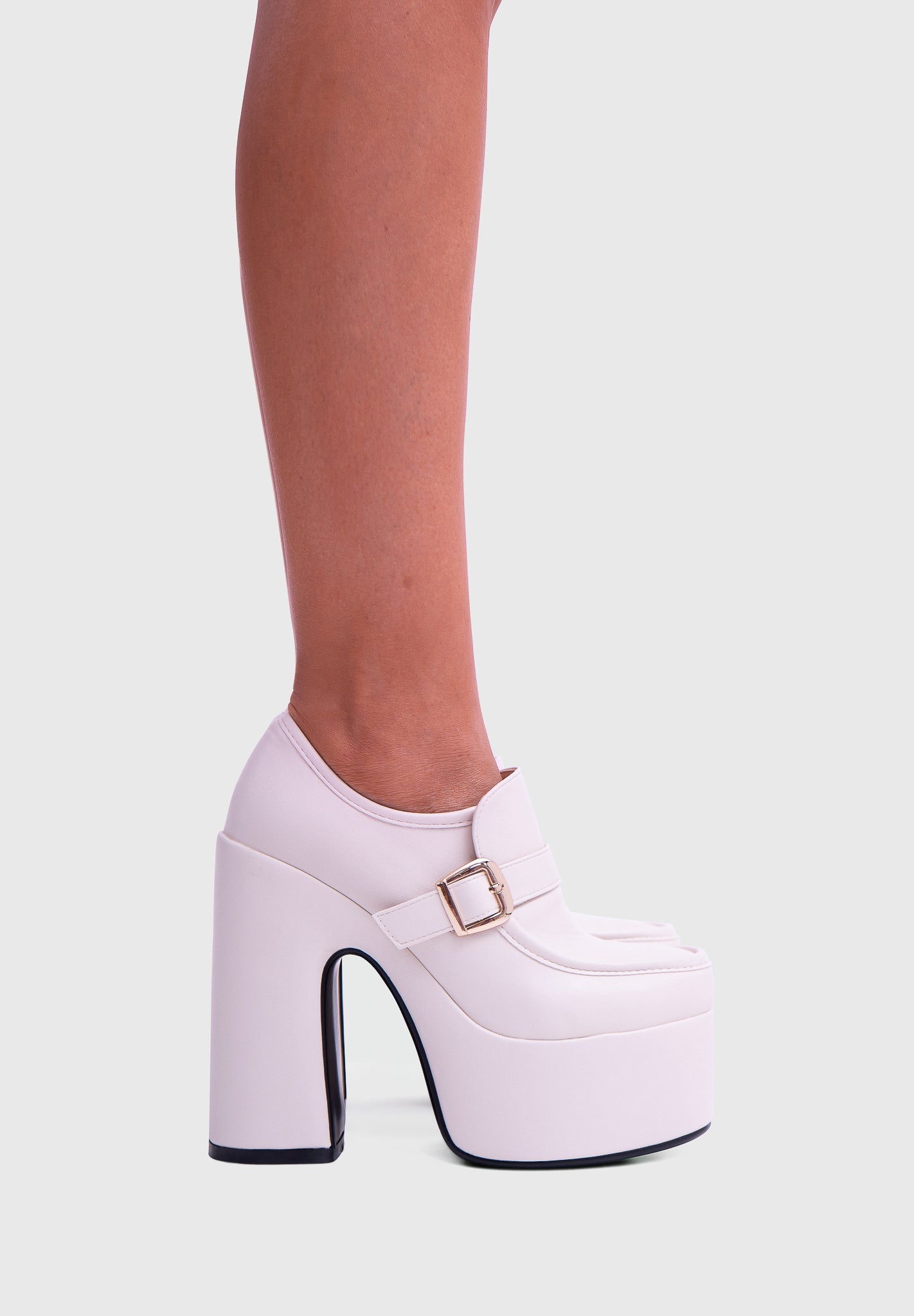 GAZE Pearl White – Platform Mary Jane with block heel and square buckle