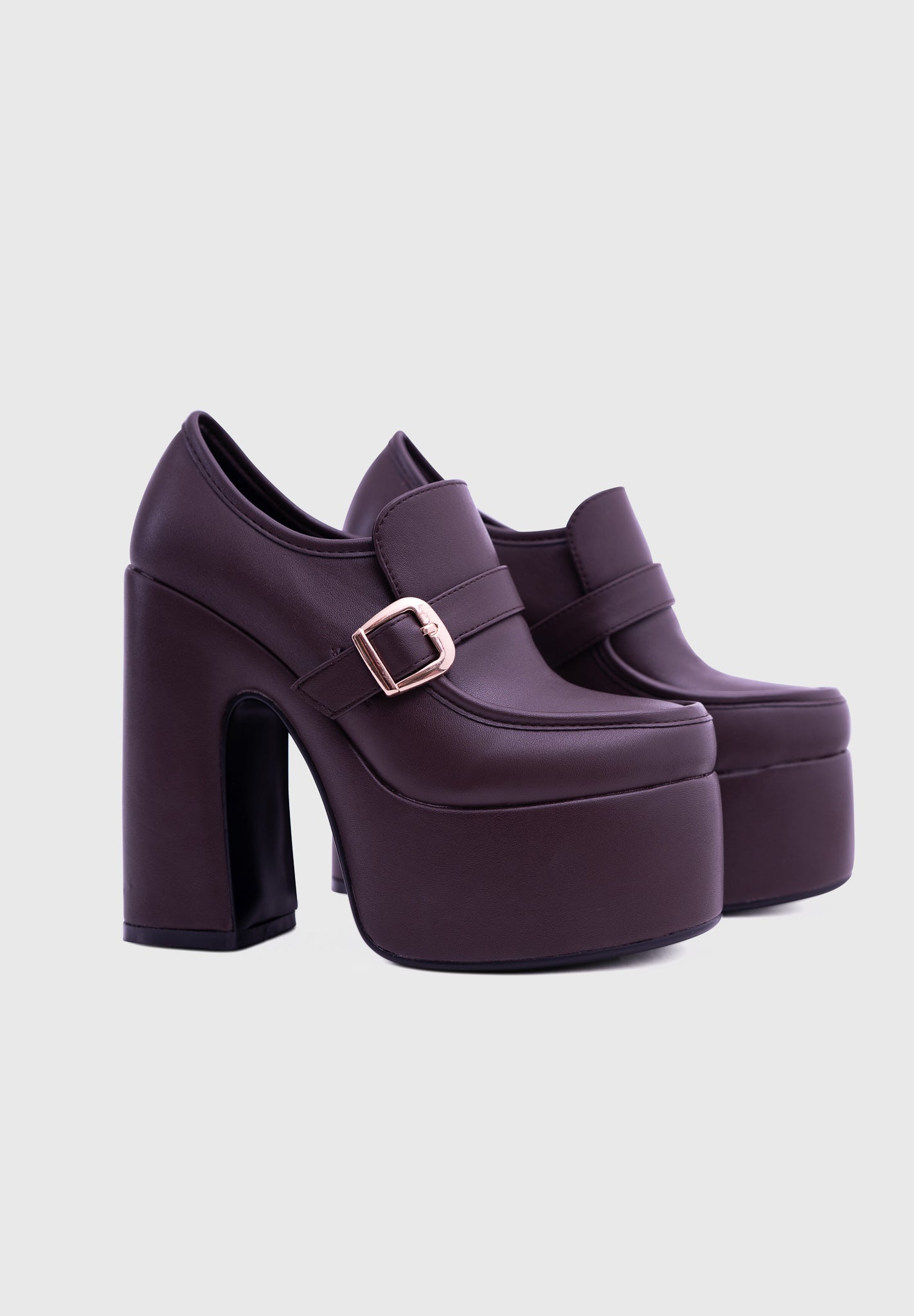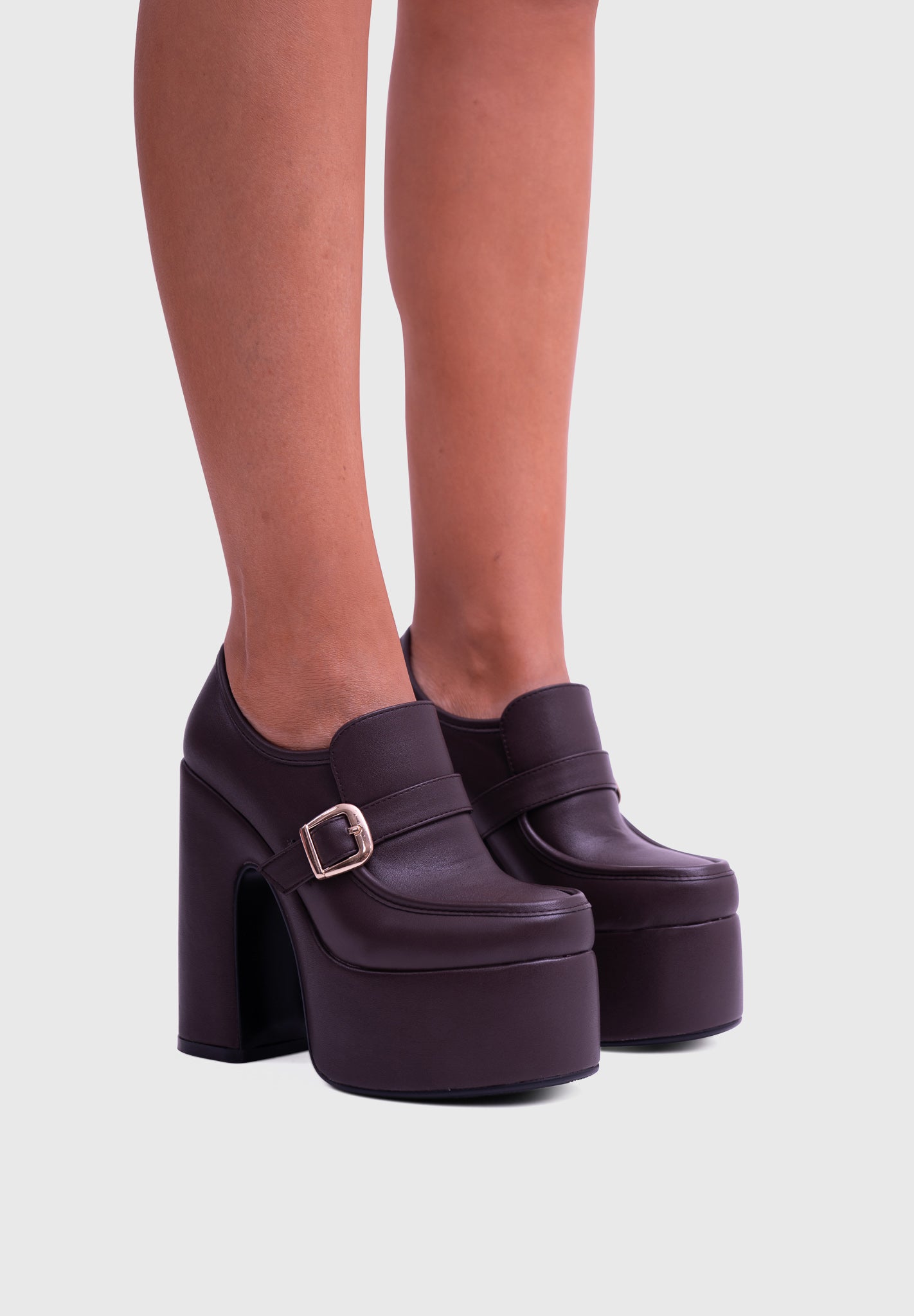 GAZE Brown – Platform Mary Jane with block heel and square buckle