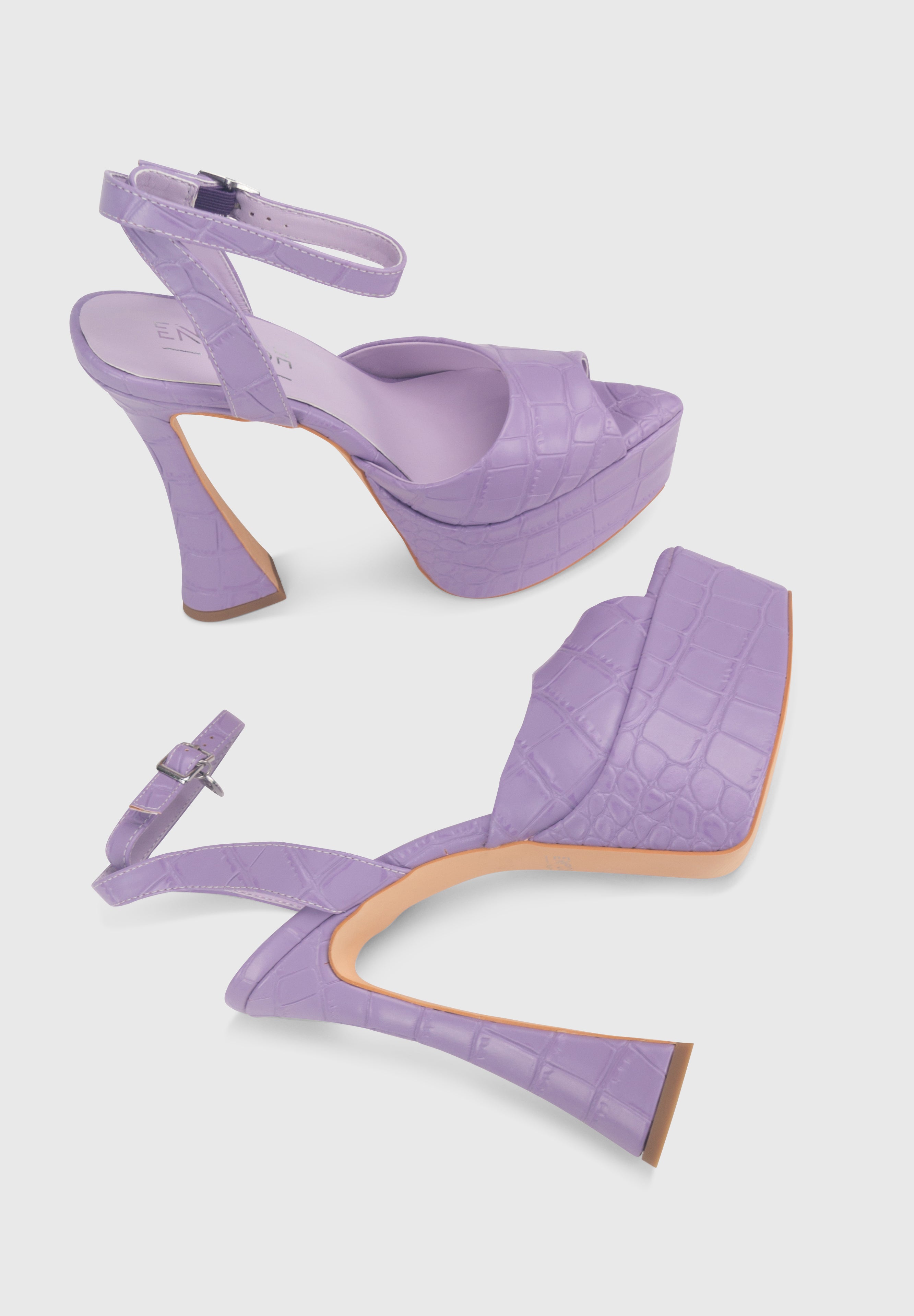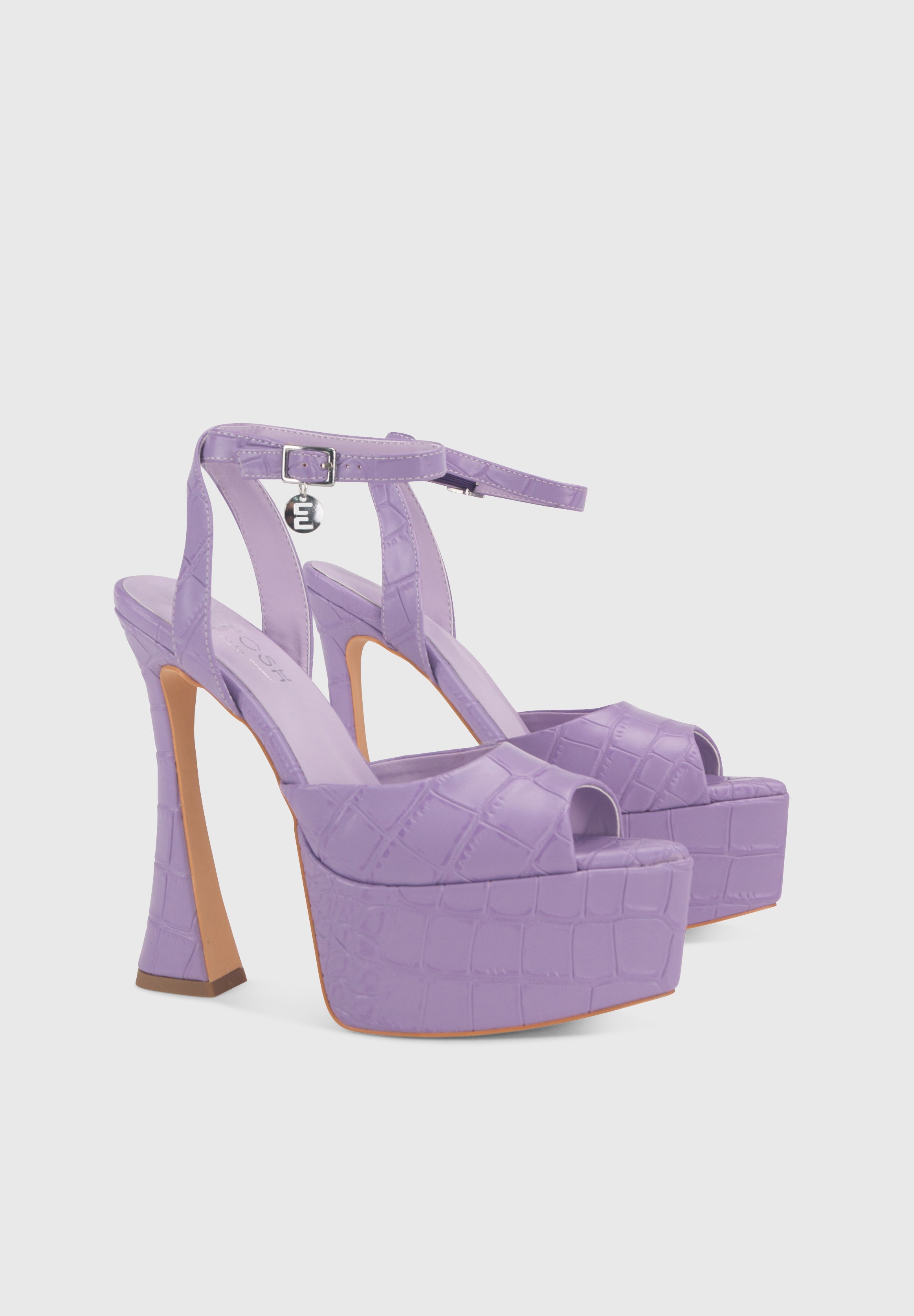 JUNE Lavanda - Sandali tacchi alti 15cm plateau a punta in effetto croc