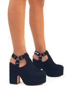 Its wide heel and structured platform ensure comfort and balance, while the black color makes it a sleek staple that pairs effortlessly with flared jeans, midi skirts, or lightweight dresses—perfect from morning meetings to evening drinks.