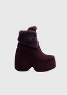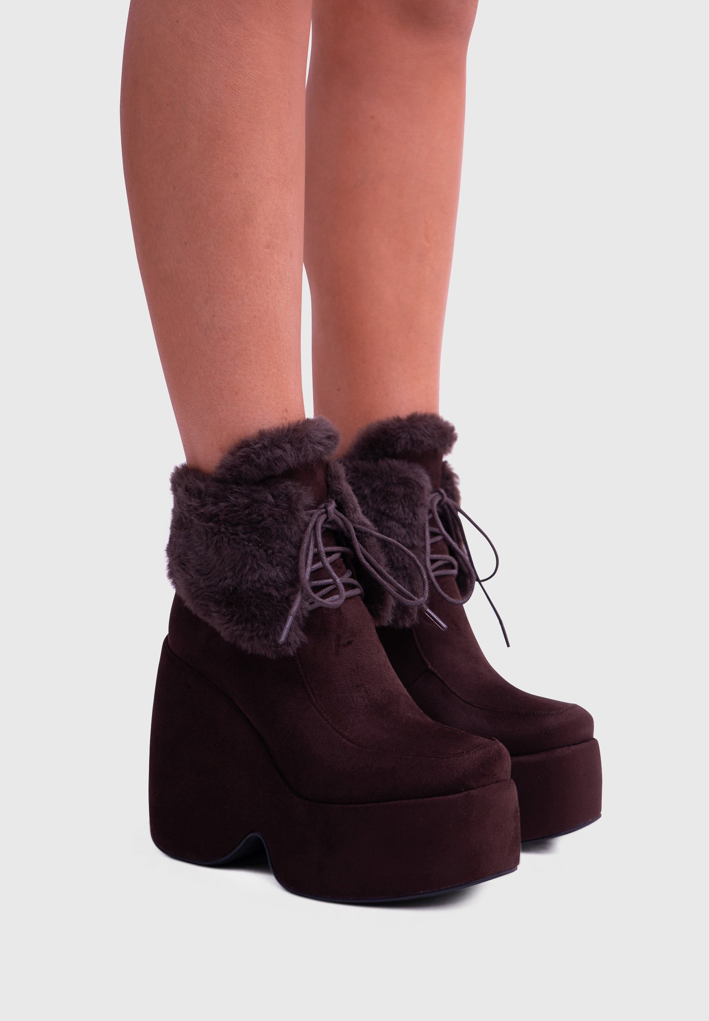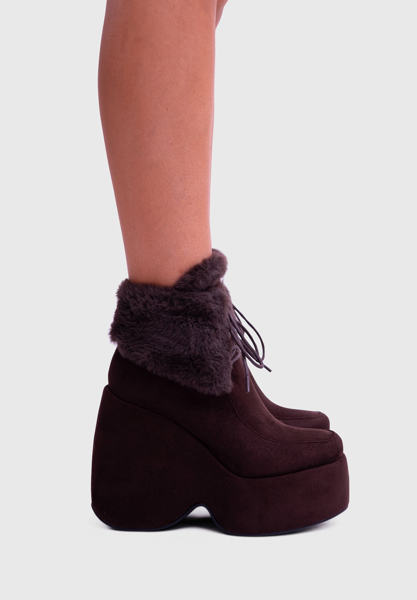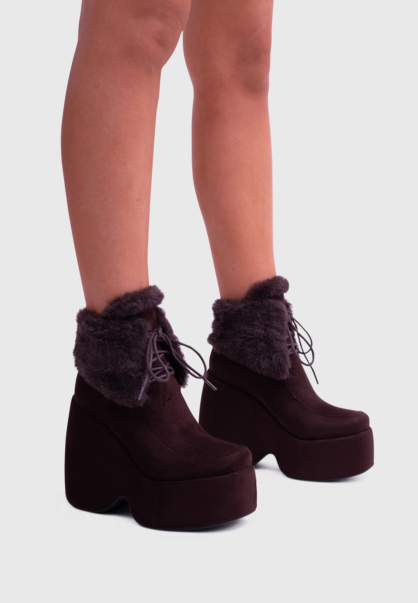 NOIRE Brown – Vegan suede platform ankle boots with laces and soft faux-fur collar