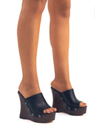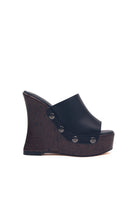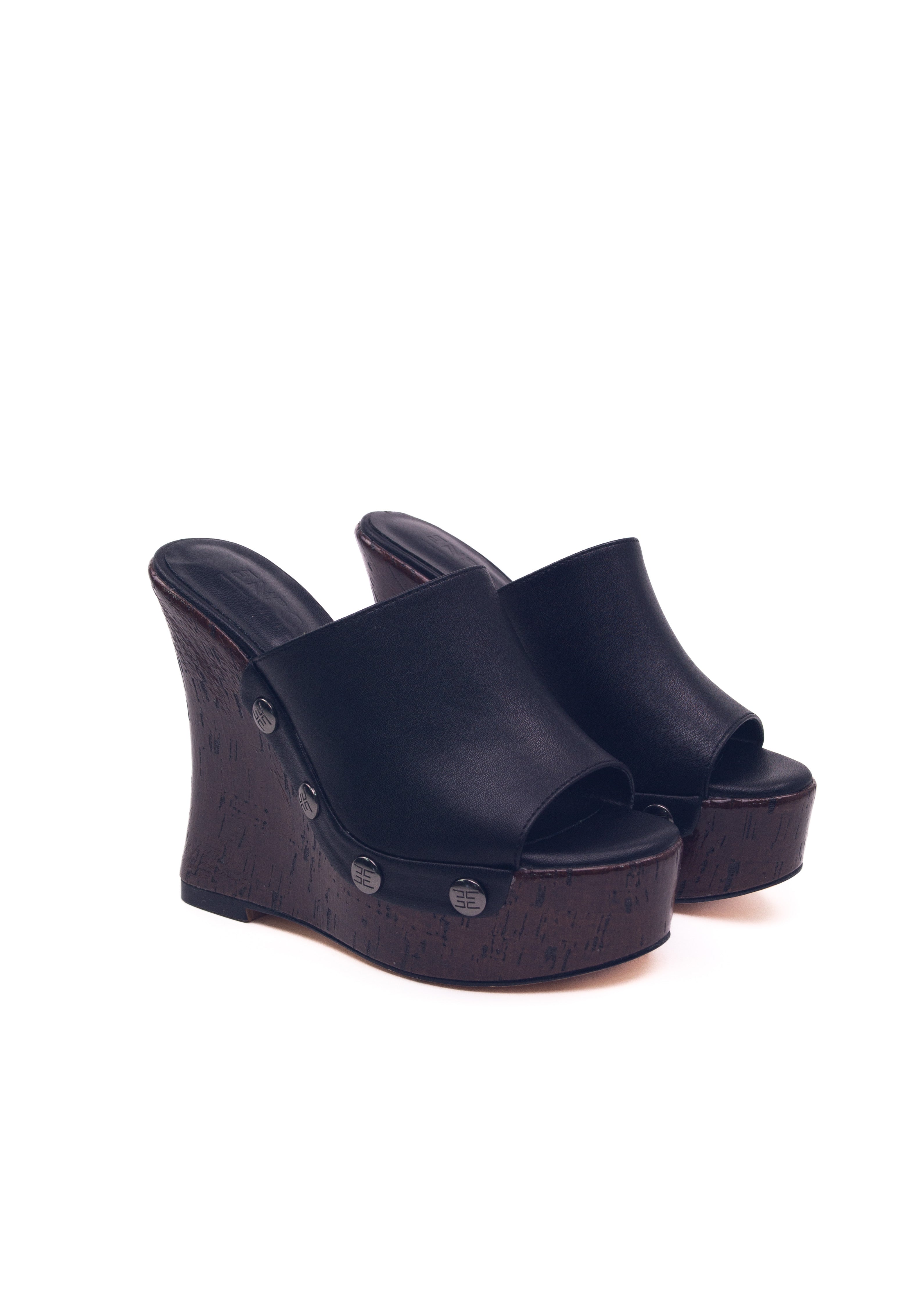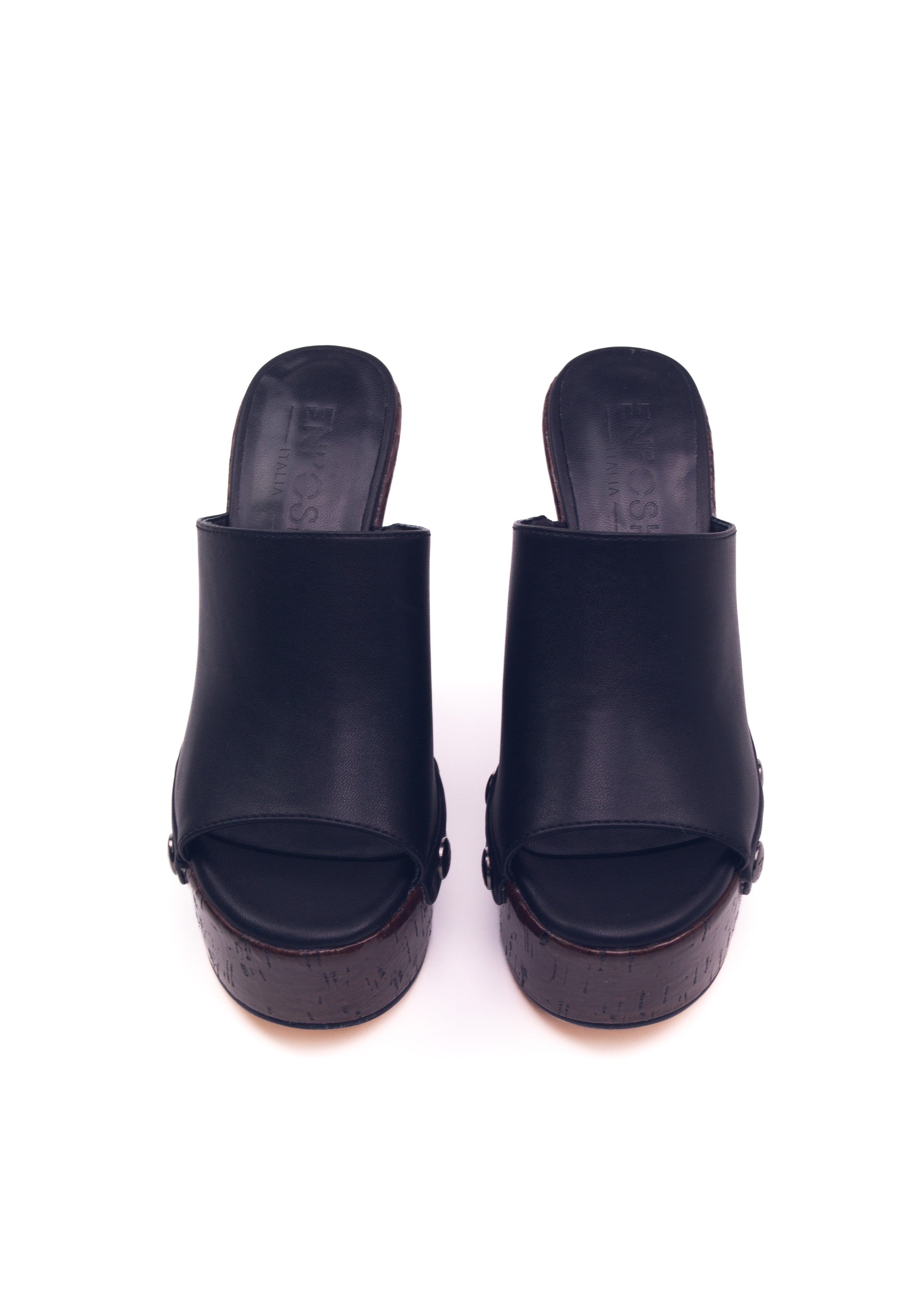 Sarune Black – Slip-On Platform Clogs with Sculpted Lacquered Wood Wedge
