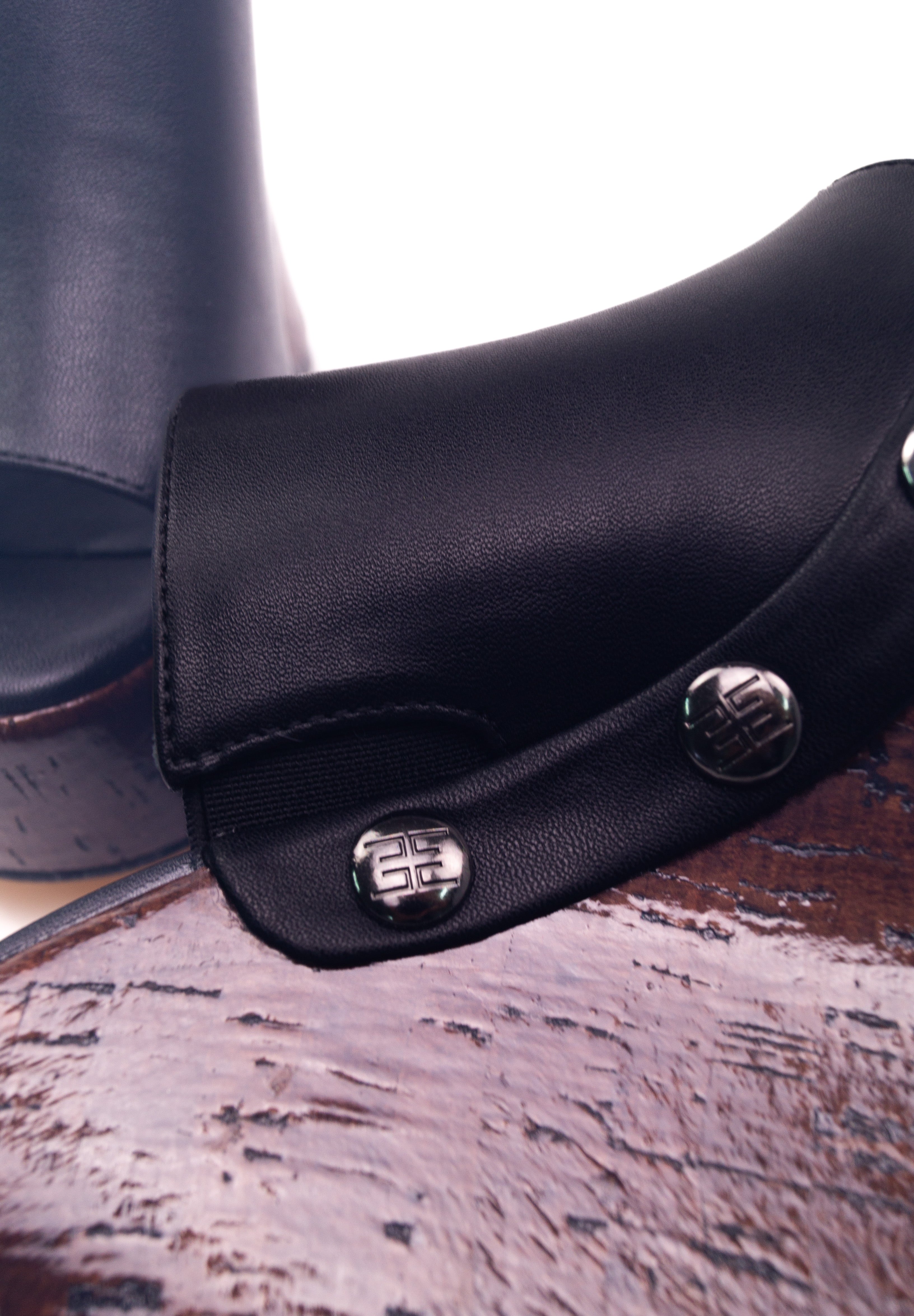 Its sculptural wedge, smooth curves, and lacquered finish create a bold silhouette. Complete with gold rivets and ENPOSH detailing, it’s made to stand out — and stay comfortable all day.