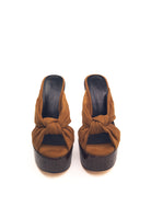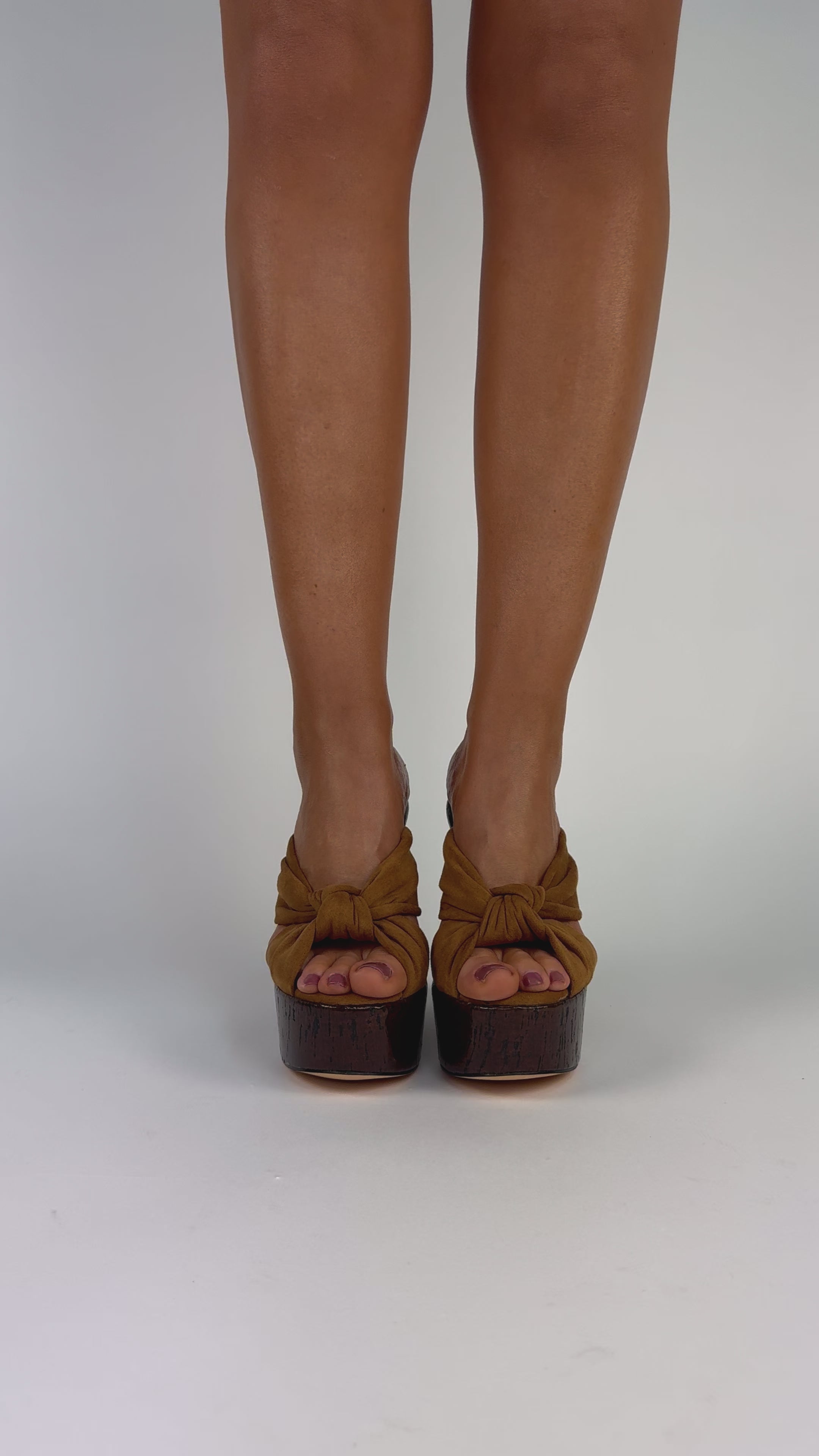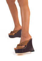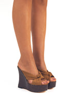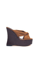 Selena Camel – Wedge Sandals with Lacquered Wood Effect