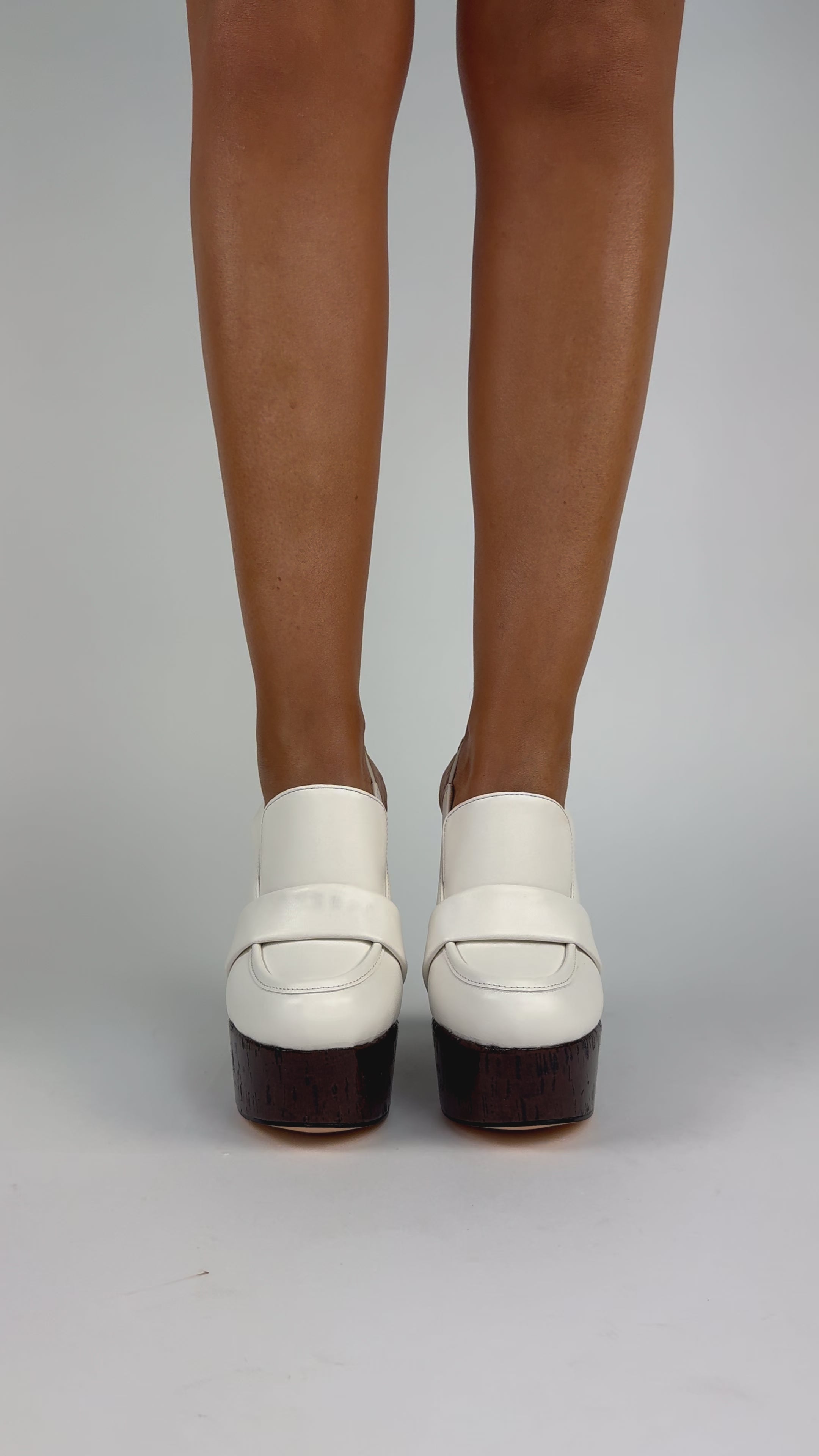 Seryn Milk White – Sculpted Wedge Moccasin-Style Mules