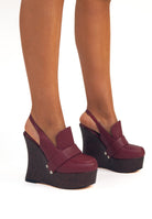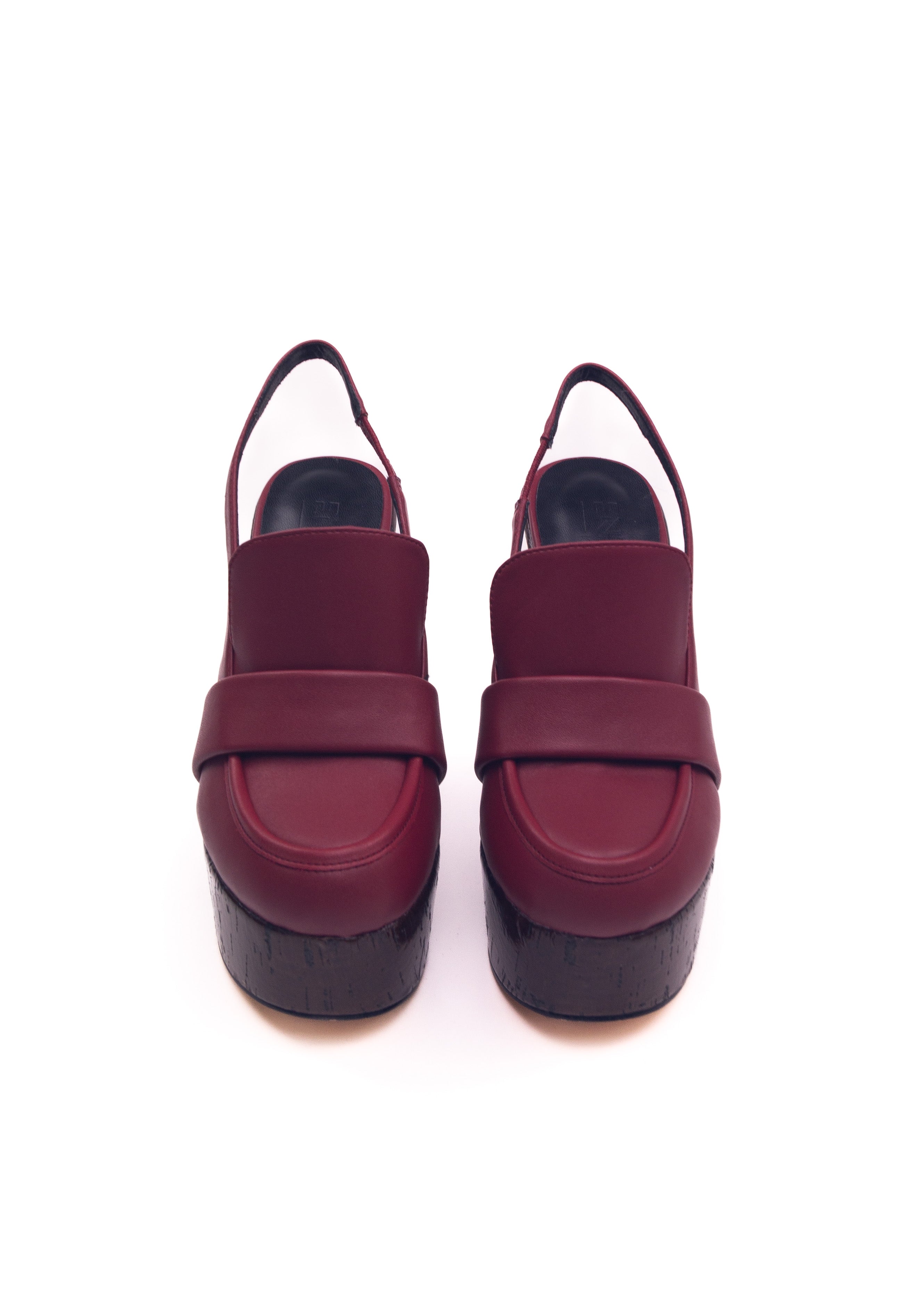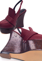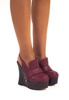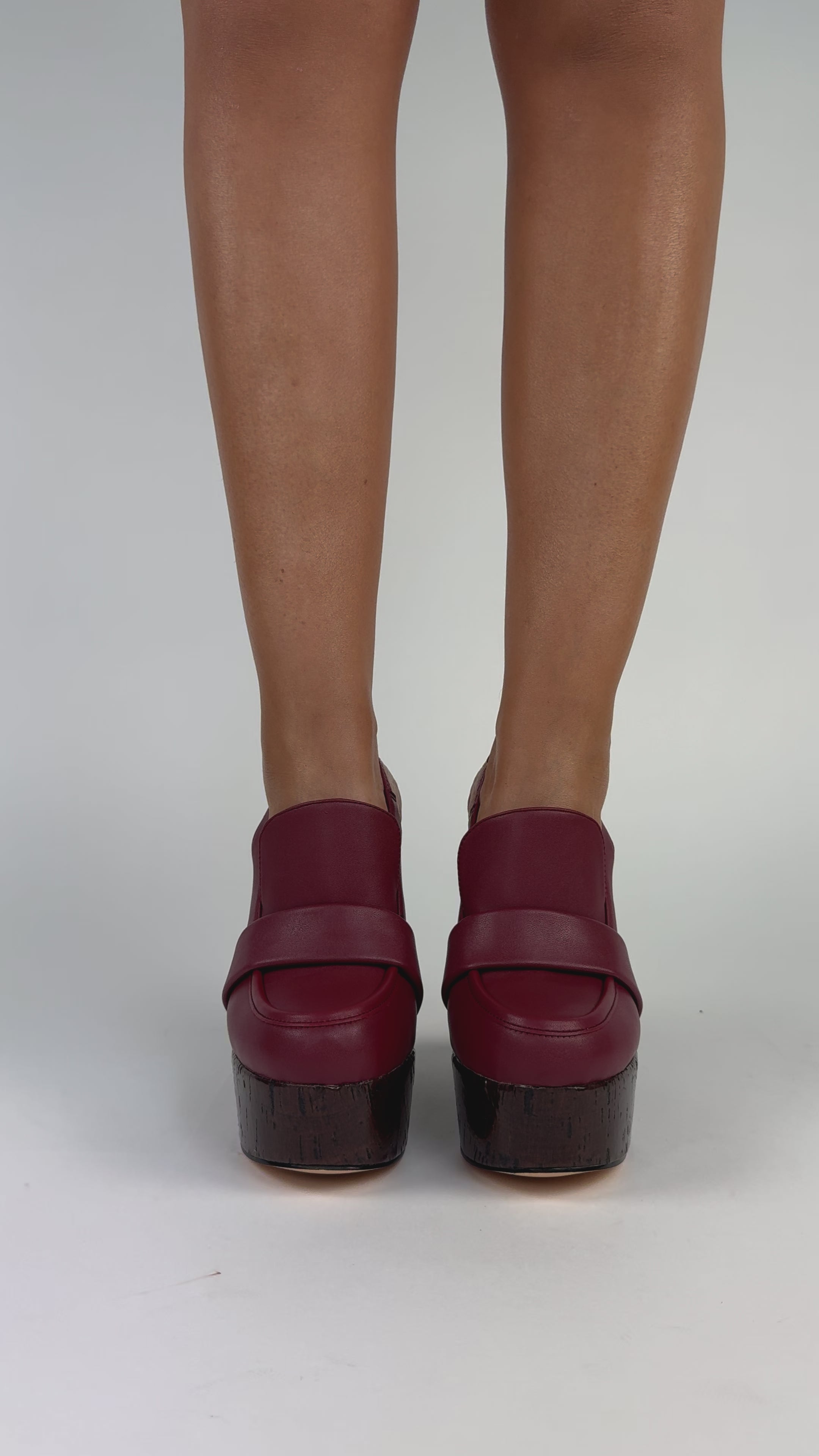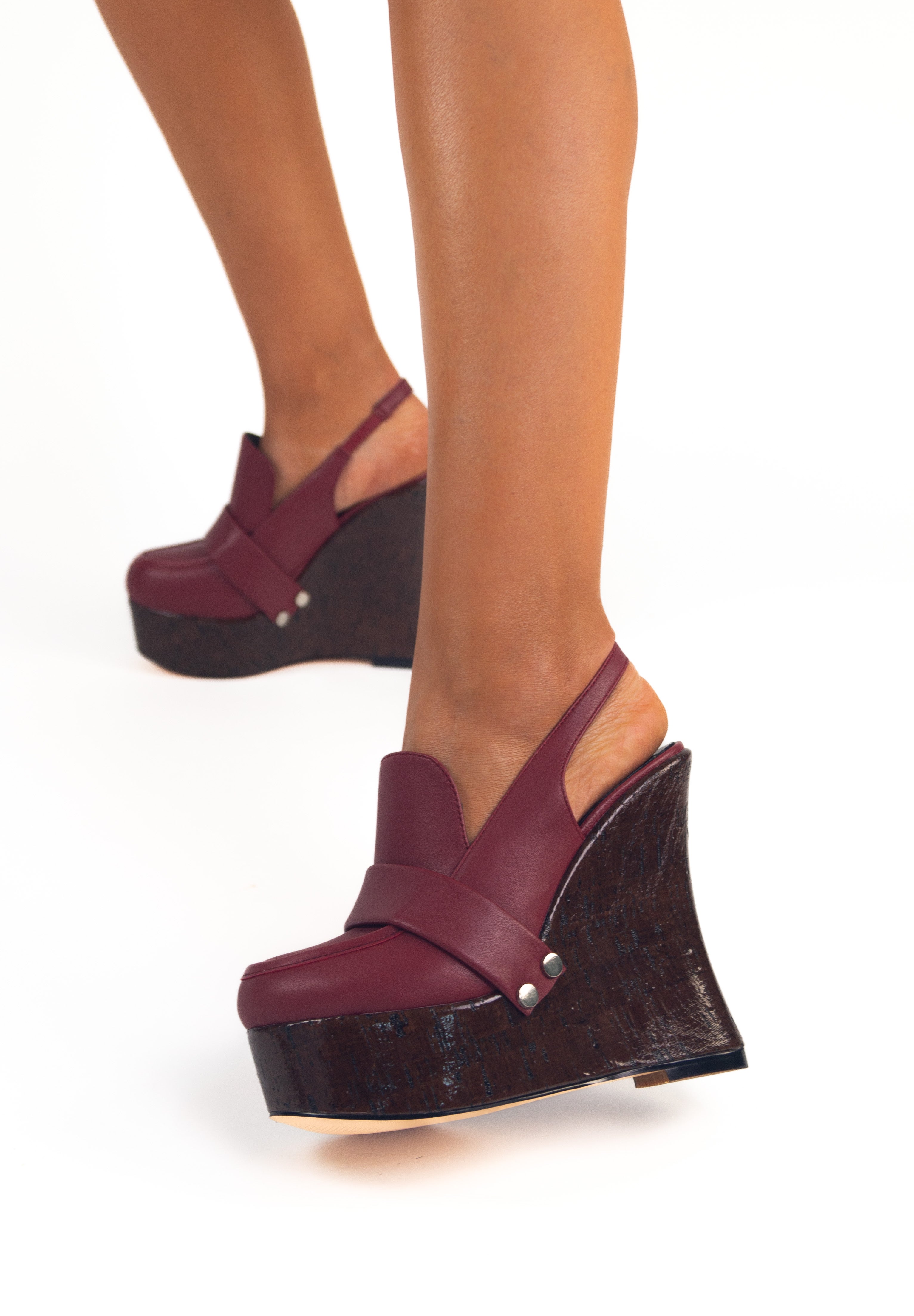 Seryn Dark Ruby Bordeaux – Sculpted Wedge Moccasin-Style Mules