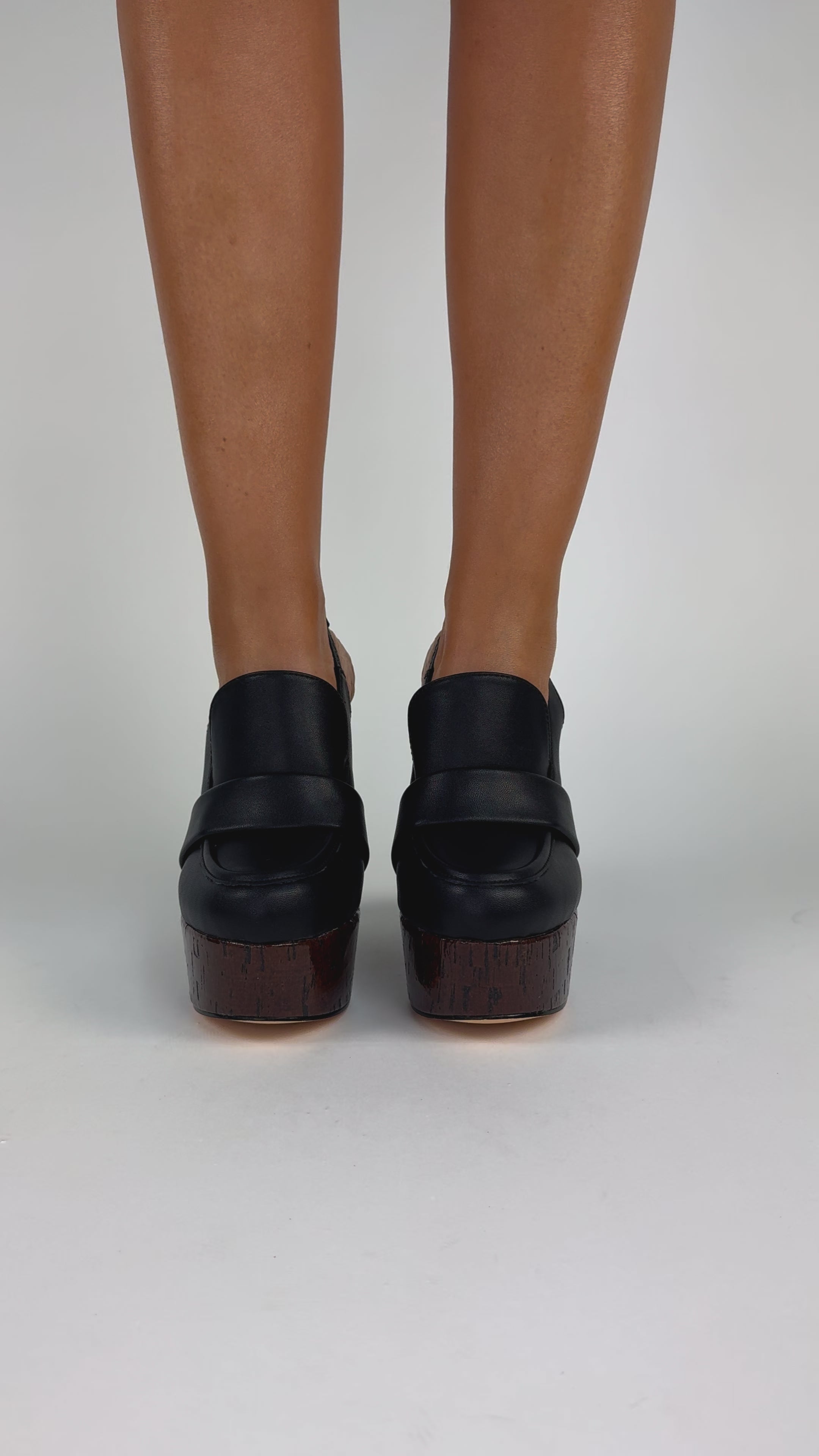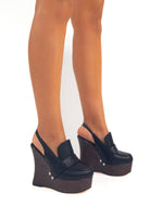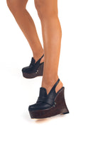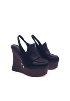 Seryn Black – Sculpted Wedge Moccasin-Style Mules