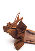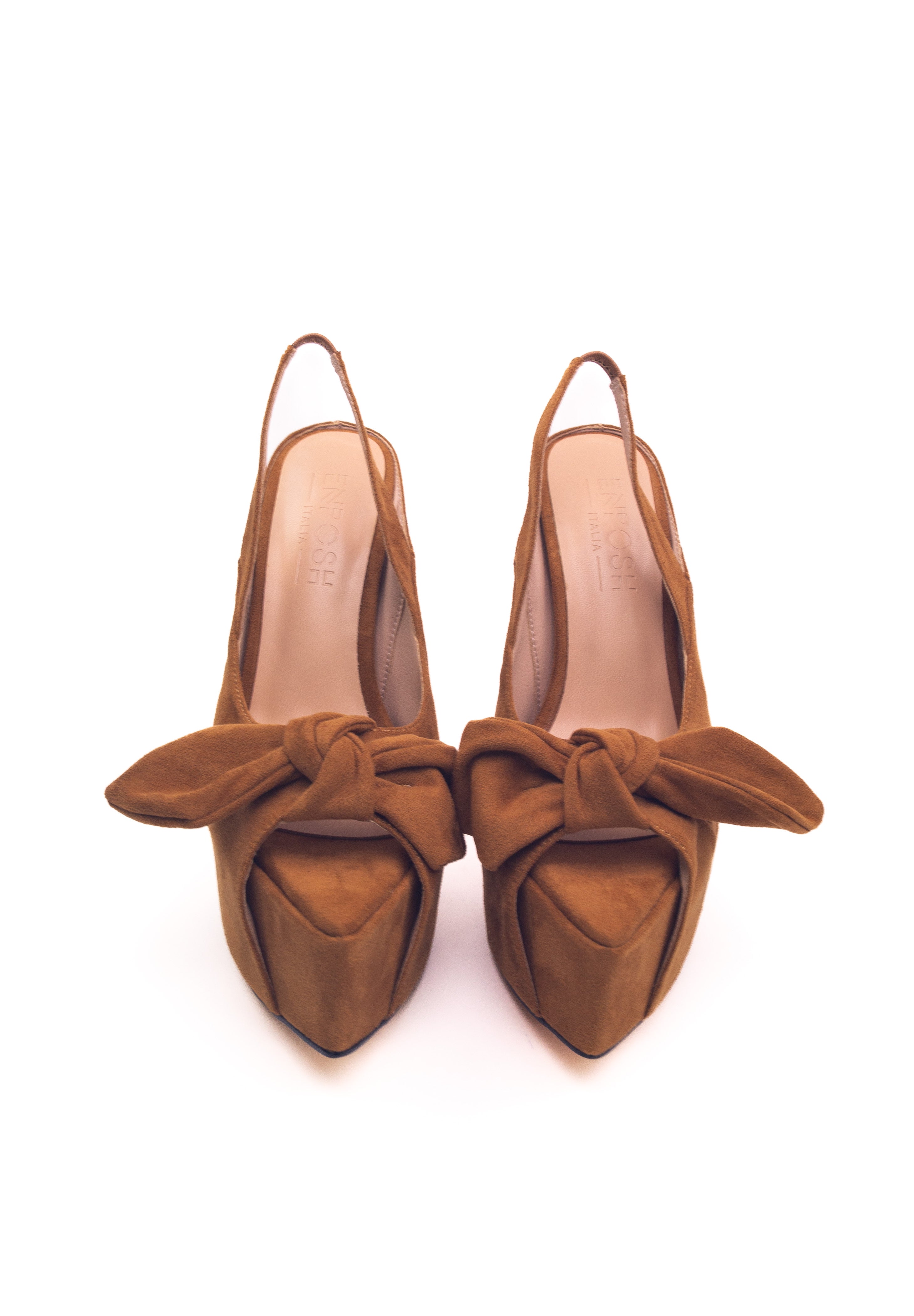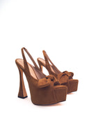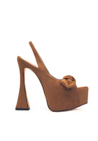 The hourglass heel and sculpted platform give it a sleek silhouette, while the bow at the front brings a feminine, modern twist.