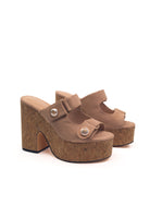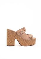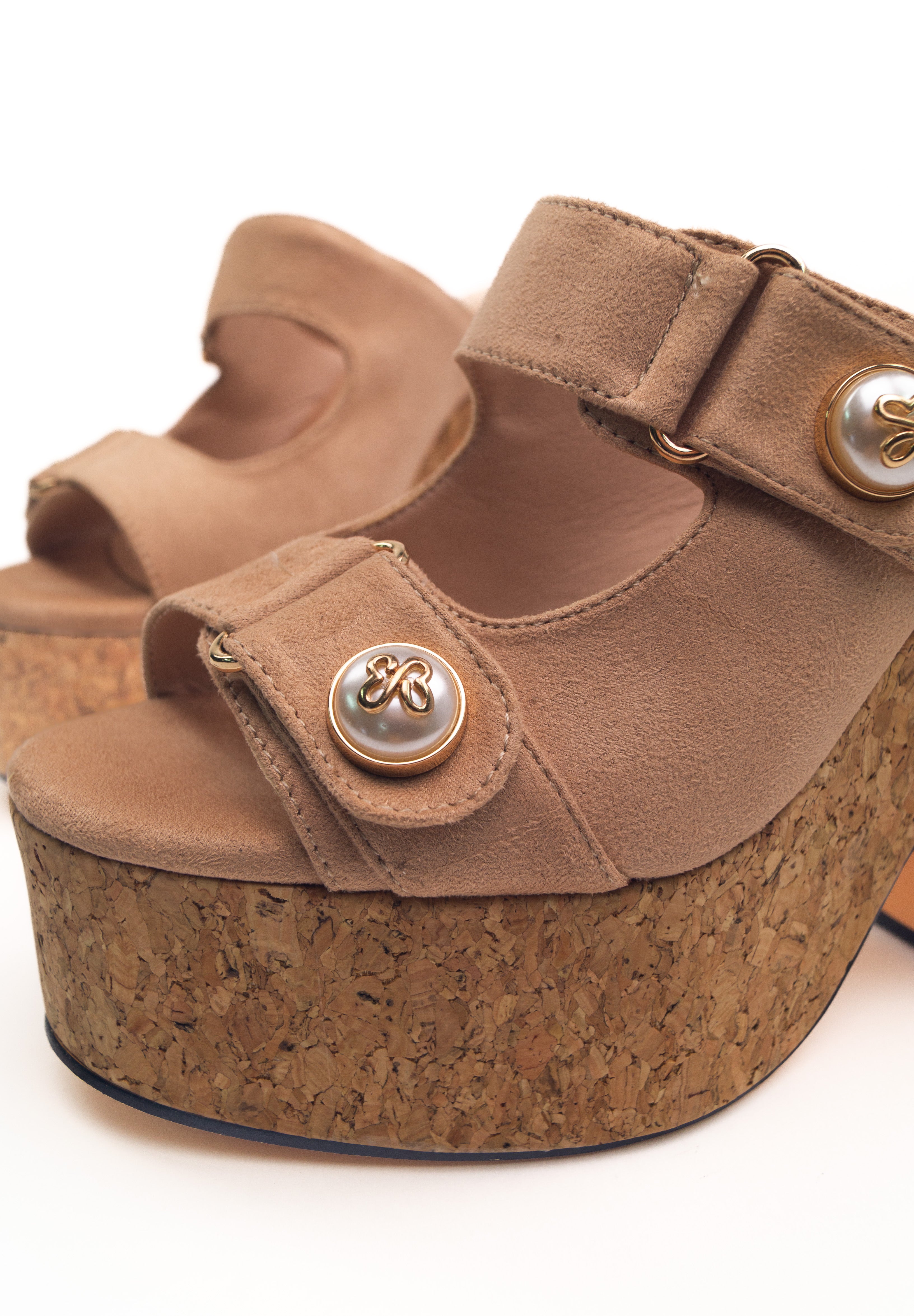 Zaluna Nude – Platform Mules with Decorative Pearl and Cork Wedge