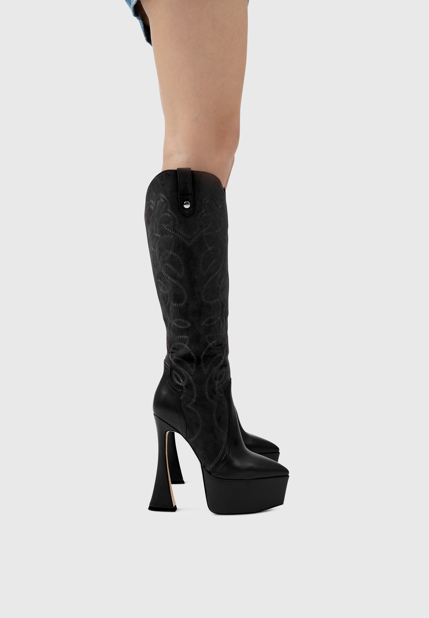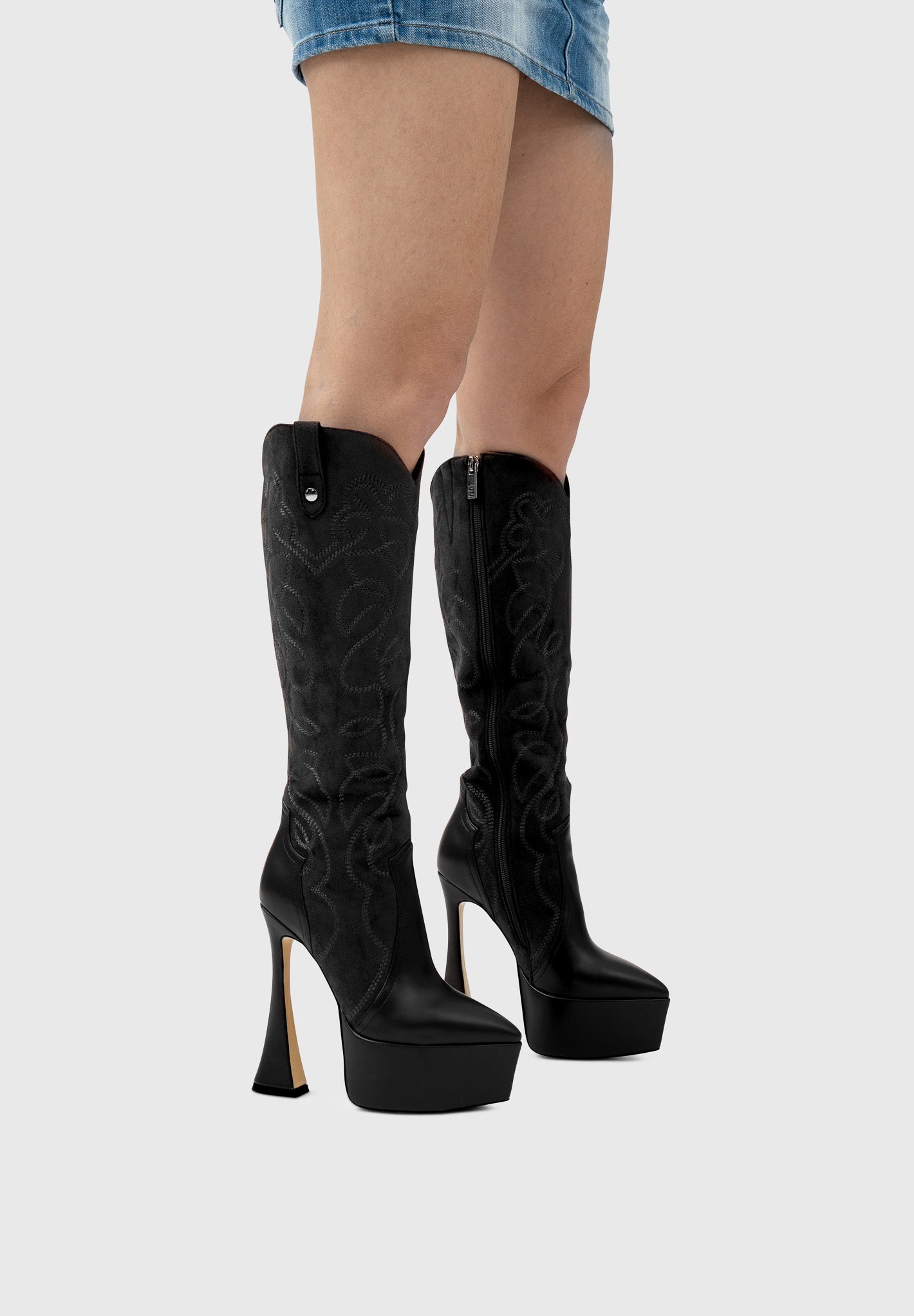 SALOON Nero – Stivali stile western plateau a punta tacco alto